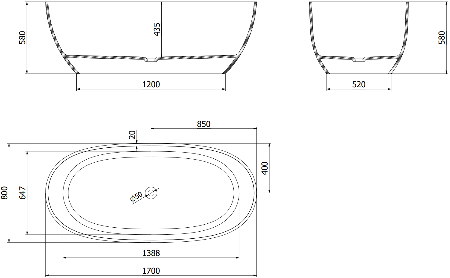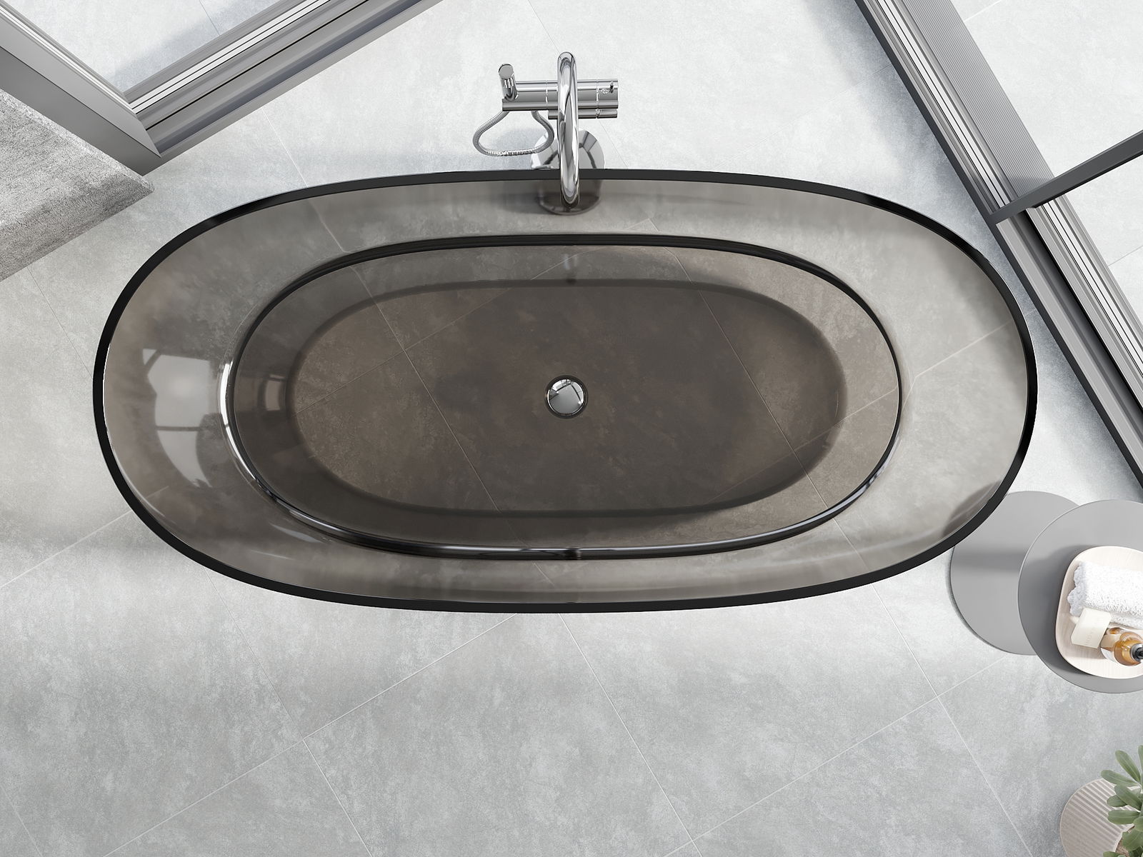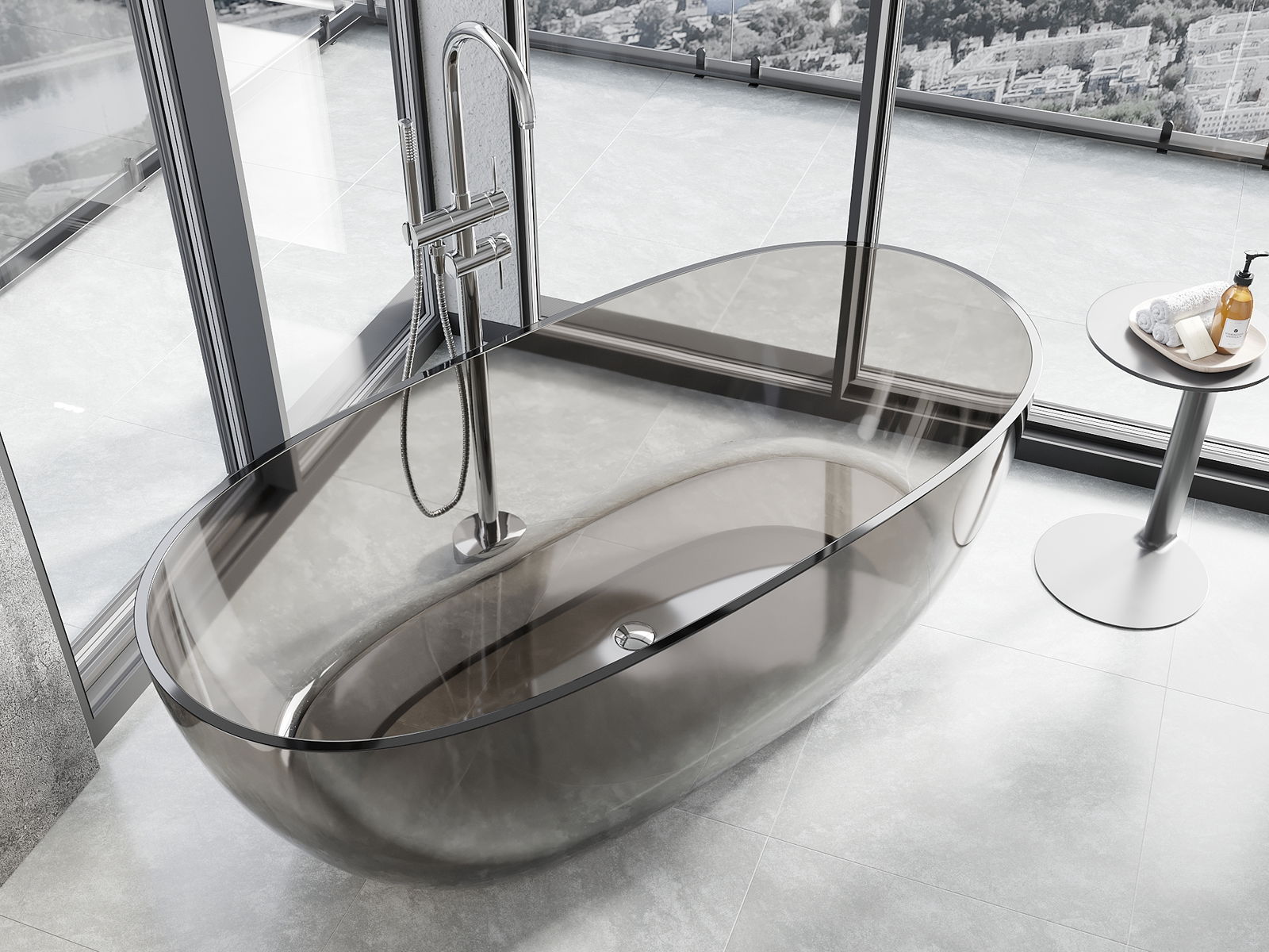 Това е модерен материал, който съчетава елегантен вид с висока издръжливост. Устойчив е на механични повреди, лесен за почистване и приятен на допир. Прозрачната форма и тънкият ръб на ваната ѝ придават лекота и уникален характер, създавайки ефектен акцент в подредбата на банята.