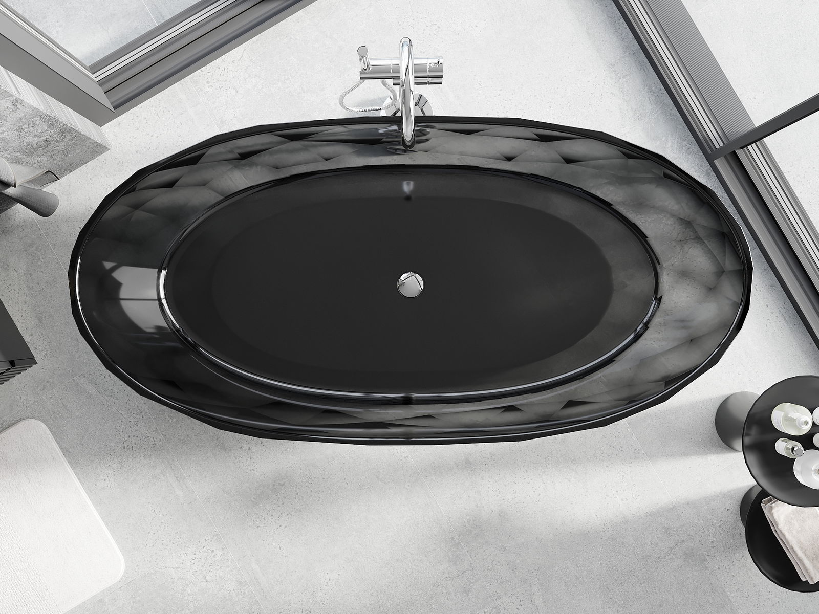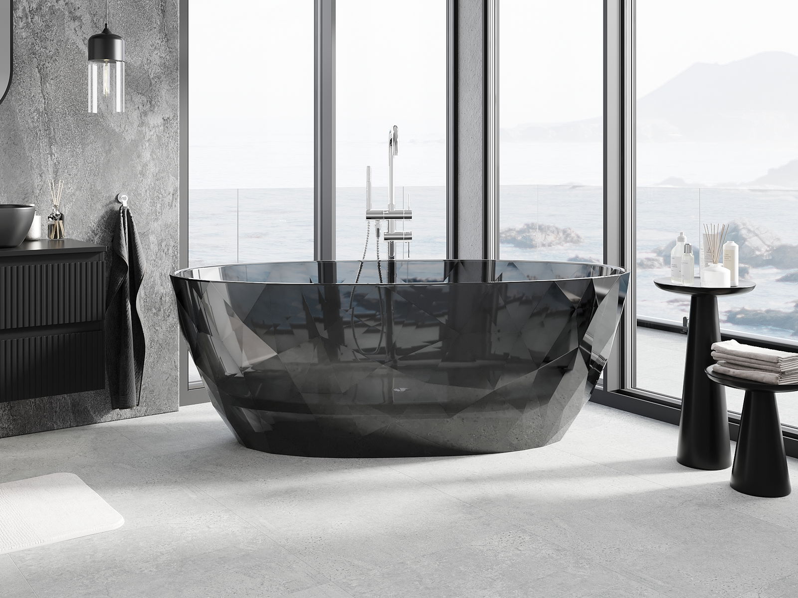 Това е модерен материал, който съчетава елегантен вид с висока издръжливост. Устойчив е на механични повреди, лесен за почистване и приятен на допир. Прозрачната форма и тънкият ръб на ваната ѝ придават лекота и уникален характер, създавайки ефектен акцент в подредбата на банята.