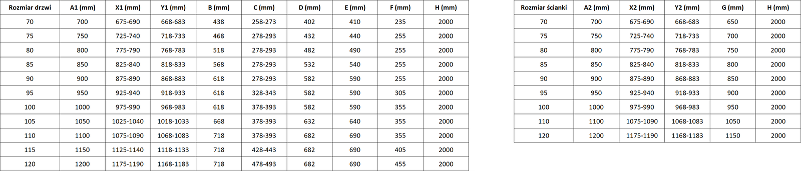 Размер: 95x90 см (дясна врата 95 см, стена 90 см)