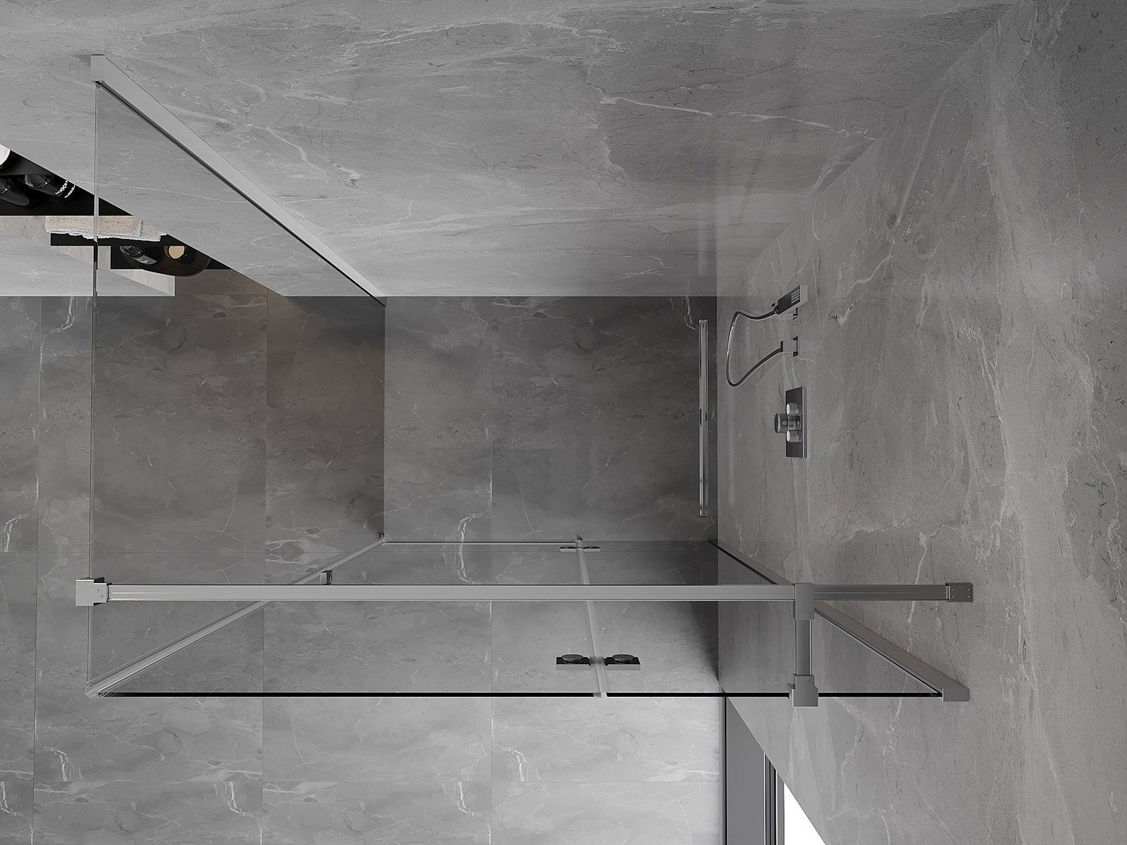 Удобната и практична дръжка е изработена от здрав и устойчив метал. Модерната форма в съчетание с покритието, съответстващо на цвета на профилите, придава на цялото модерен и стилен вид, подчертавайки естетиката на всяка баня.