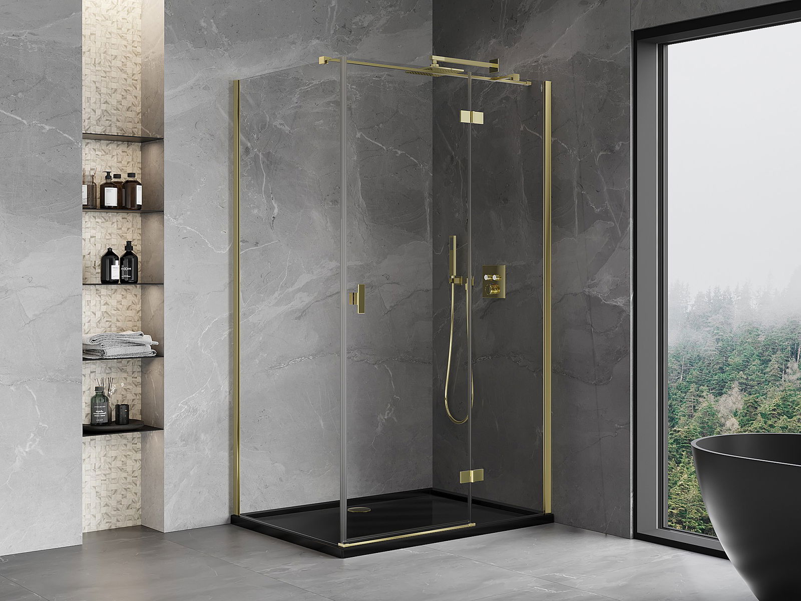 Mexen Rio квадратна душ кабина 90 x 90 см, прозрачна, черна - 860-090-090-70-00