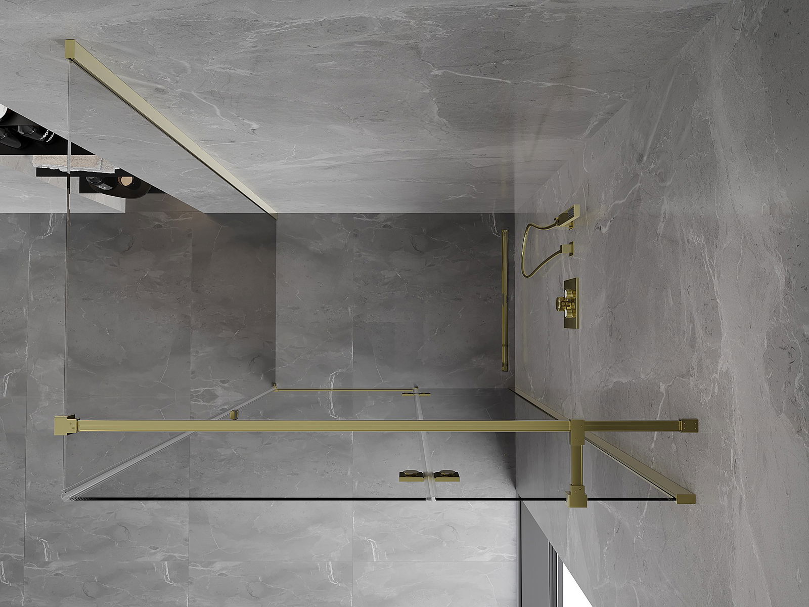 Удобната и практична дръжка е изработена от здрав и устойчив метал. Модерната форма в съчетание с покритието, съответстващо на цвета на профилите, придава на цялото модерен и стилен вид, подчертавайки естетиката на всяка баня.