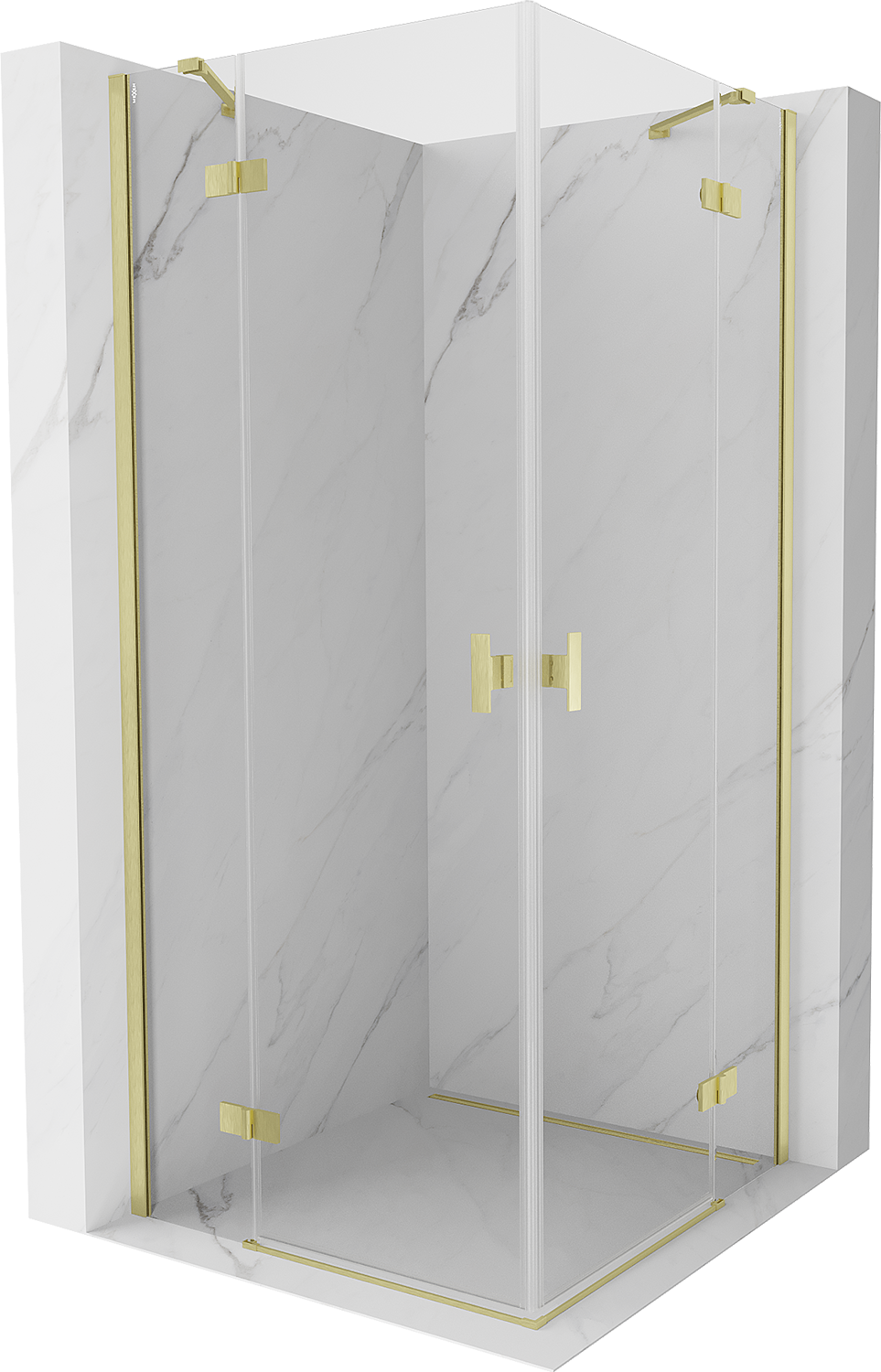 Mexen Mist-H Duo кабина за душ с отварящи се врати 70 x 70 см, прозрачна, четкано златно - 8A5-070L-070P-55-00