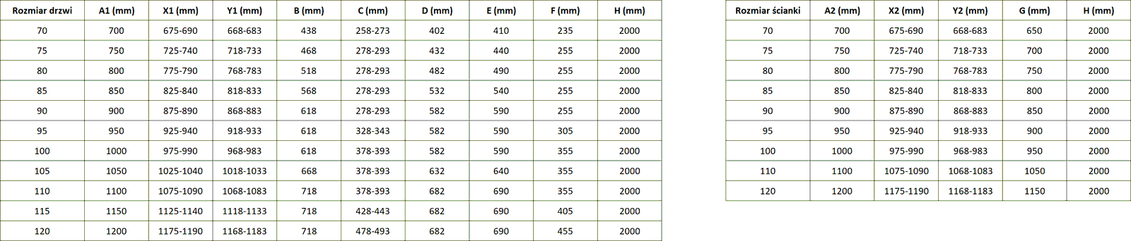 Размер: 75x120 cm (дясна врата 75 cm, стена 120 cm)