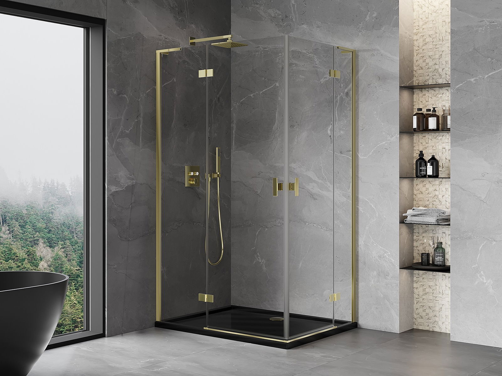 Mexen Mist-H L Duo кабина за душ с отваряща се врата лява 90 x 70 см, прозрачна, със златисто покритие - 8A5L-090L-070P-50-00