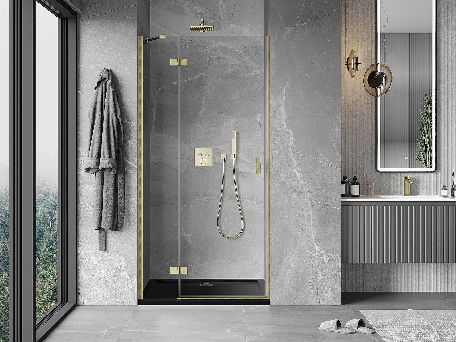 Mexen Mist-H отваряща се лява душ врата 100 см, прозрачна, златисто матова - 8A5-100-000-55-00-L