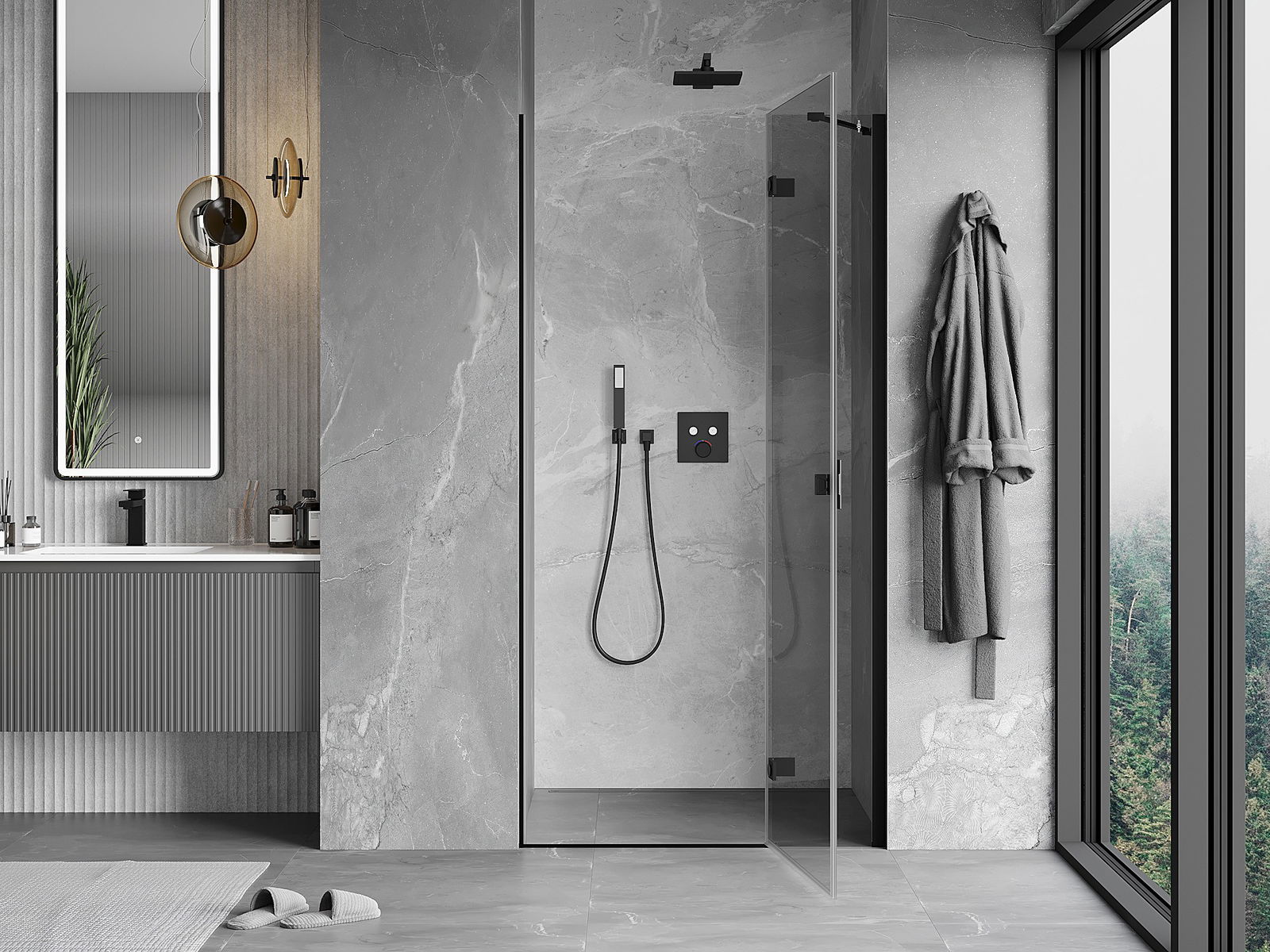 Удобната и практична дръжка е изработена от здрав и устойчив метал. Модерната форма в съчетание с покритието, съответстващо на цвета на профилите, придава на цялото модерен и стилен вид, подчертавайки естетиката на всяка баня.
