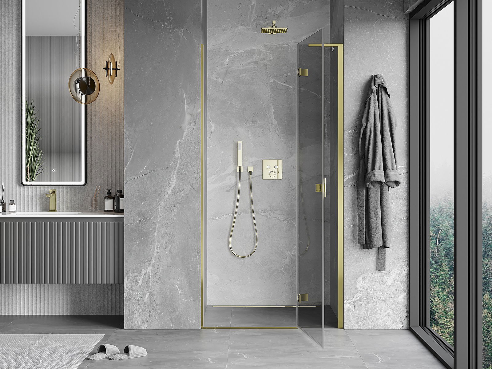Mexen Mist-H L душ врати, отварящи се навън, дясно, 85 см, прозрачно, златно - 8A5L-085-000-50-00-P