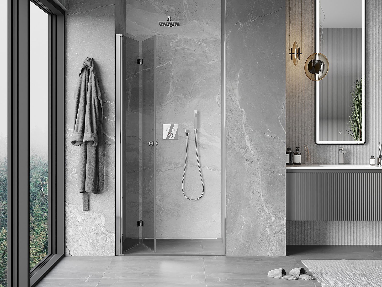 Възможността за сгъване на вратите, както навън, така и навътре, позволява да се осигури повече пространство, когато душът не се използва. Това е идеалното решение за по-малки бани, максимално използвайки наличната площ.