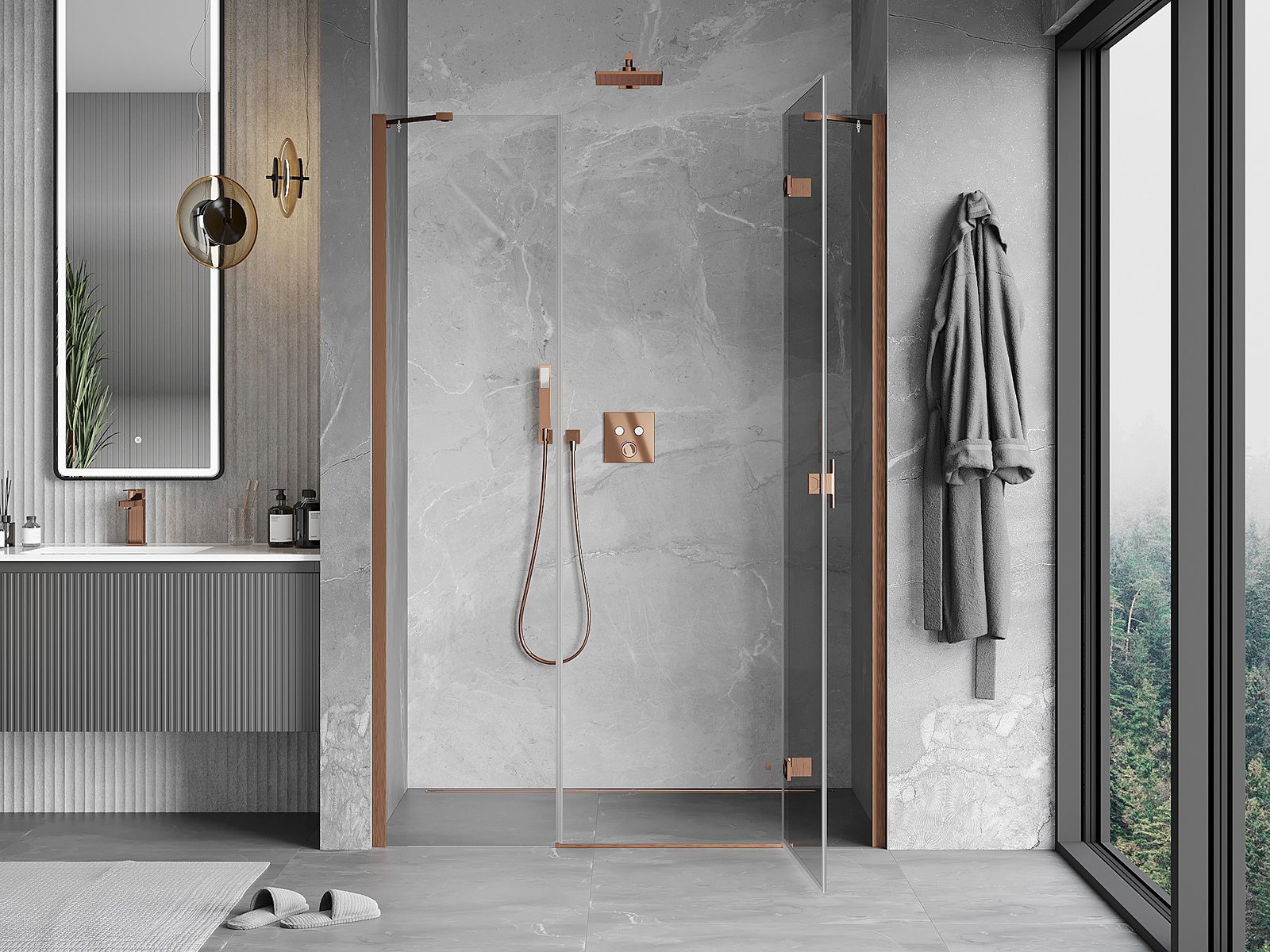 Mexen Mist-H Душ врати с панти десни 135 см, прозрачни, четкана мед - 8A5-135-001-65-00-P