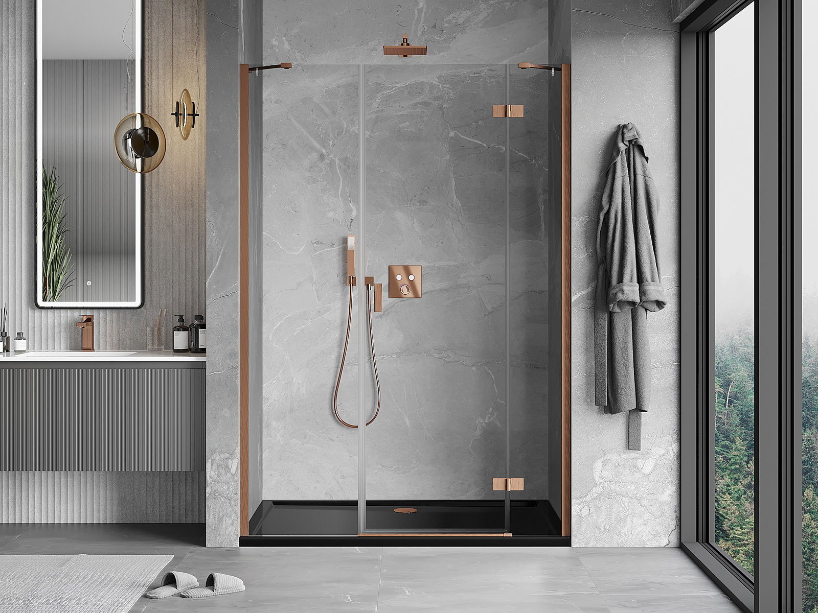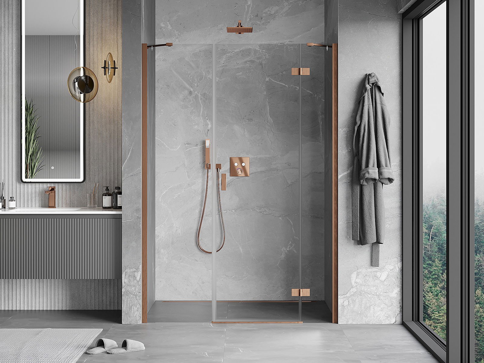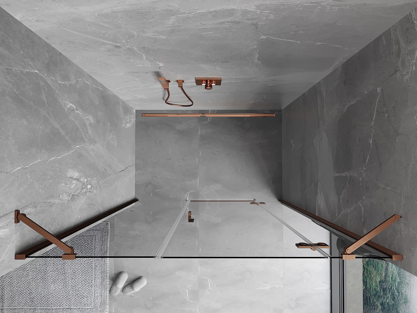 Удобната и практична дръжка е изработена от здрав и устойчив метал. Модерната форма в съчетание с покритието, съответстващо на цвета на профилите, придава на цялото модерен и стилен вид, подчертавайки естетиката на всяка баня.