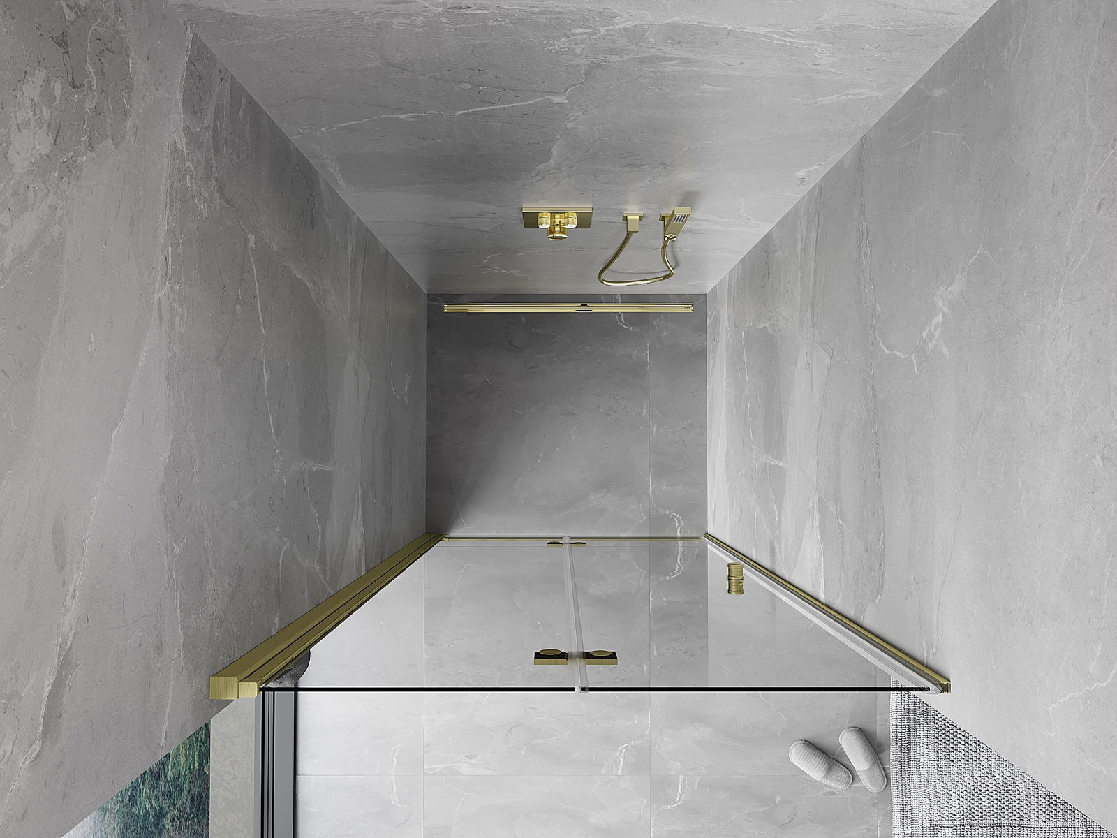 Mexen Mist-F сгъваеми душ врати леви 80 см, прозрачни, златни изчеткани - 8A6-080-000-55-00-L