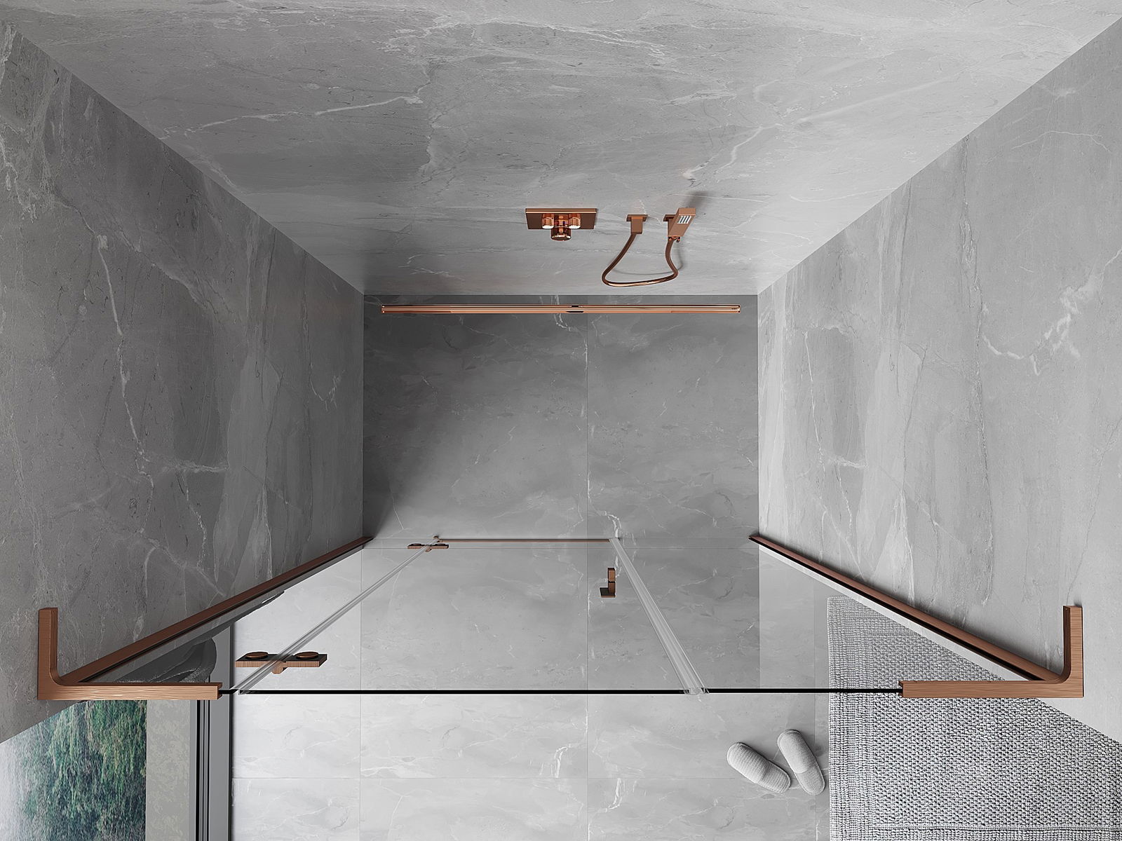 Mexen Mist-H L душ врати отварящи се наляво 155 см, прозрачни, матиран мед - 8A5L-155-001-65-00-L