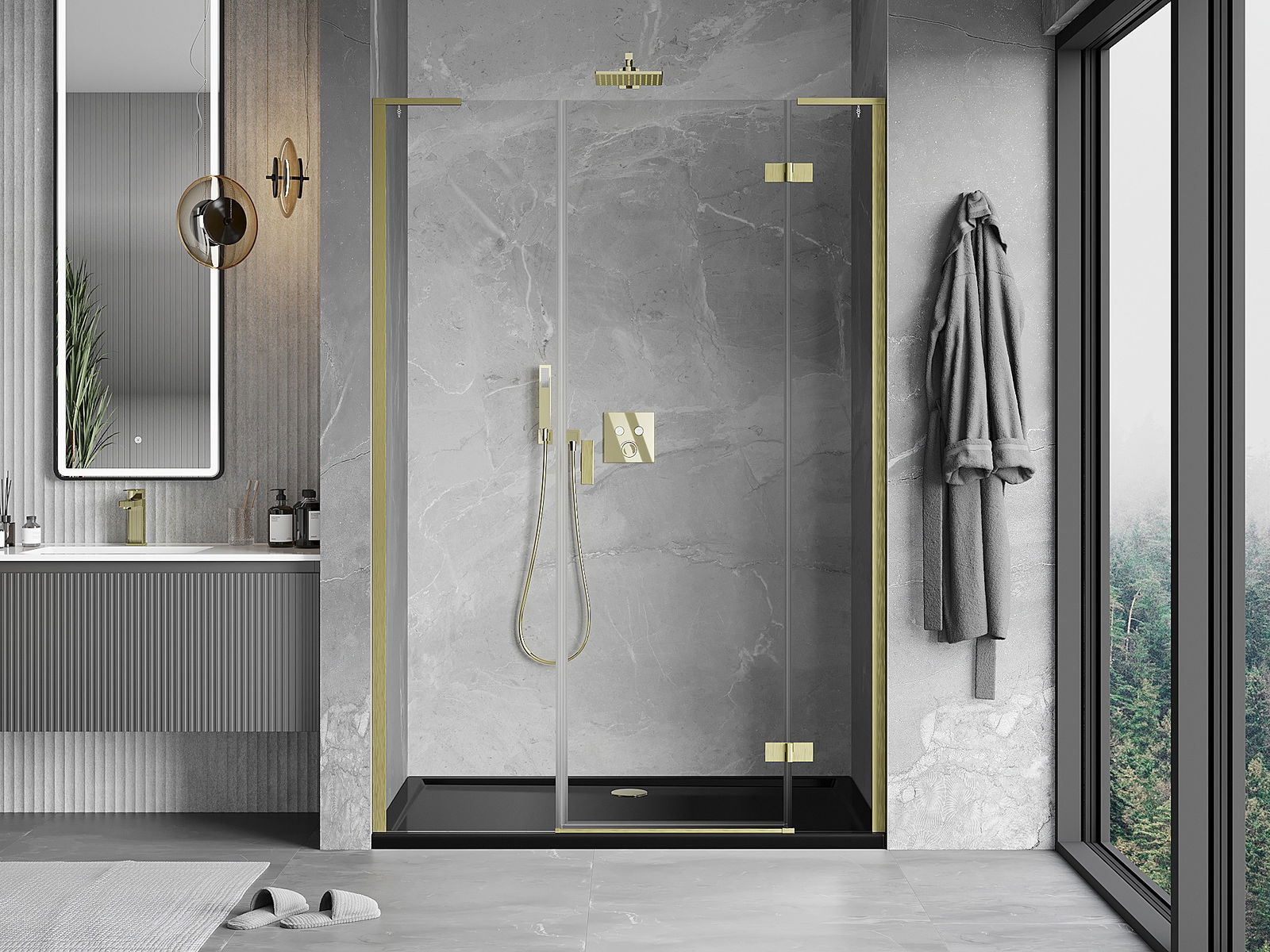 Mexen Mist-H L Душ кабина с панти, десни 125 см, прозрачен, златно матово - 8A5L-125-001-55-00-P