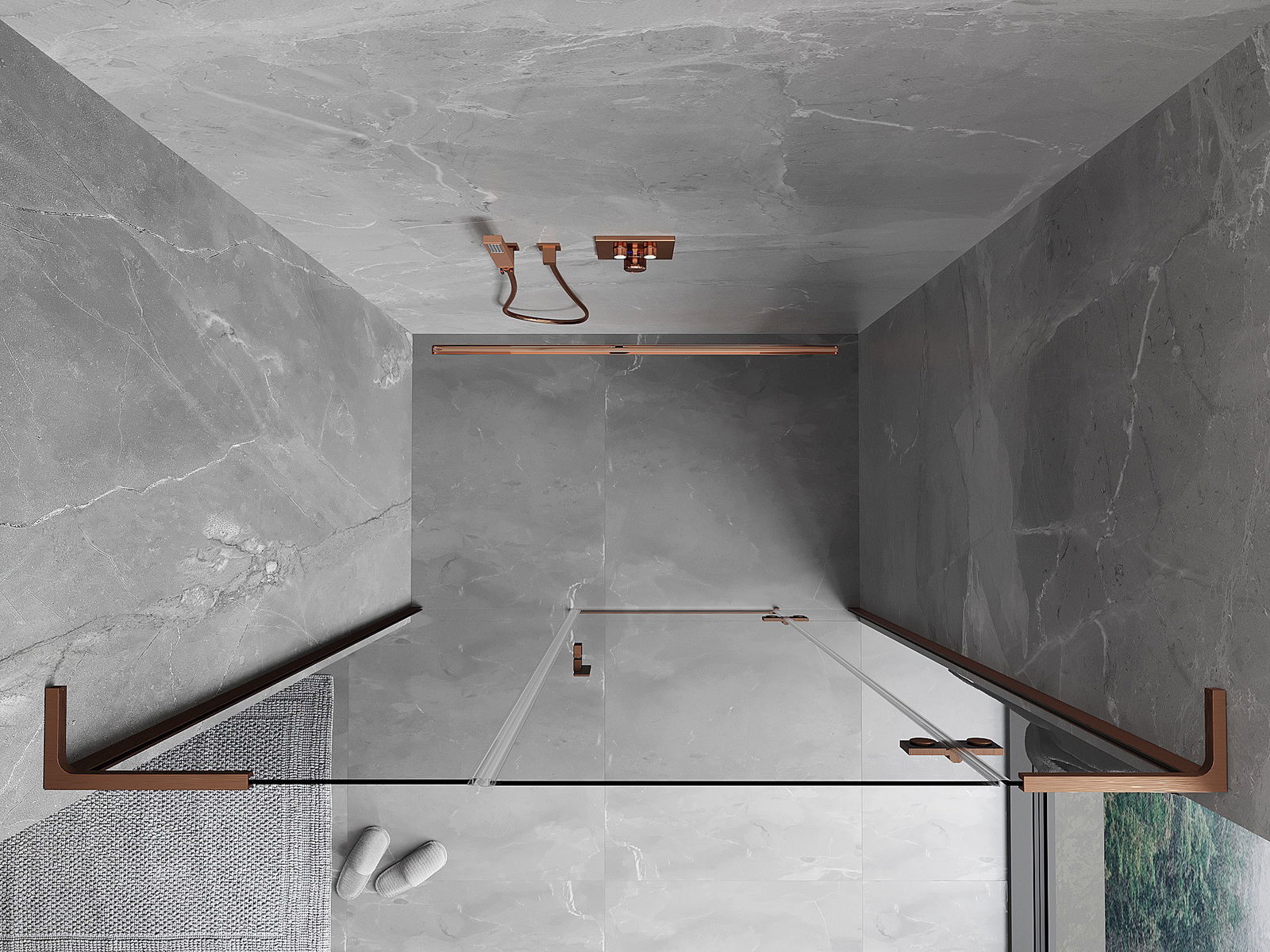 Удобната и практична дръжка е изработена от здрав и устойчив метал. Модерната форма в съчетание с покритието, съответстващо на цвета на профилите, придава на цялото модерен и стилен вид, подчертавайки естетиката на всяка баня.