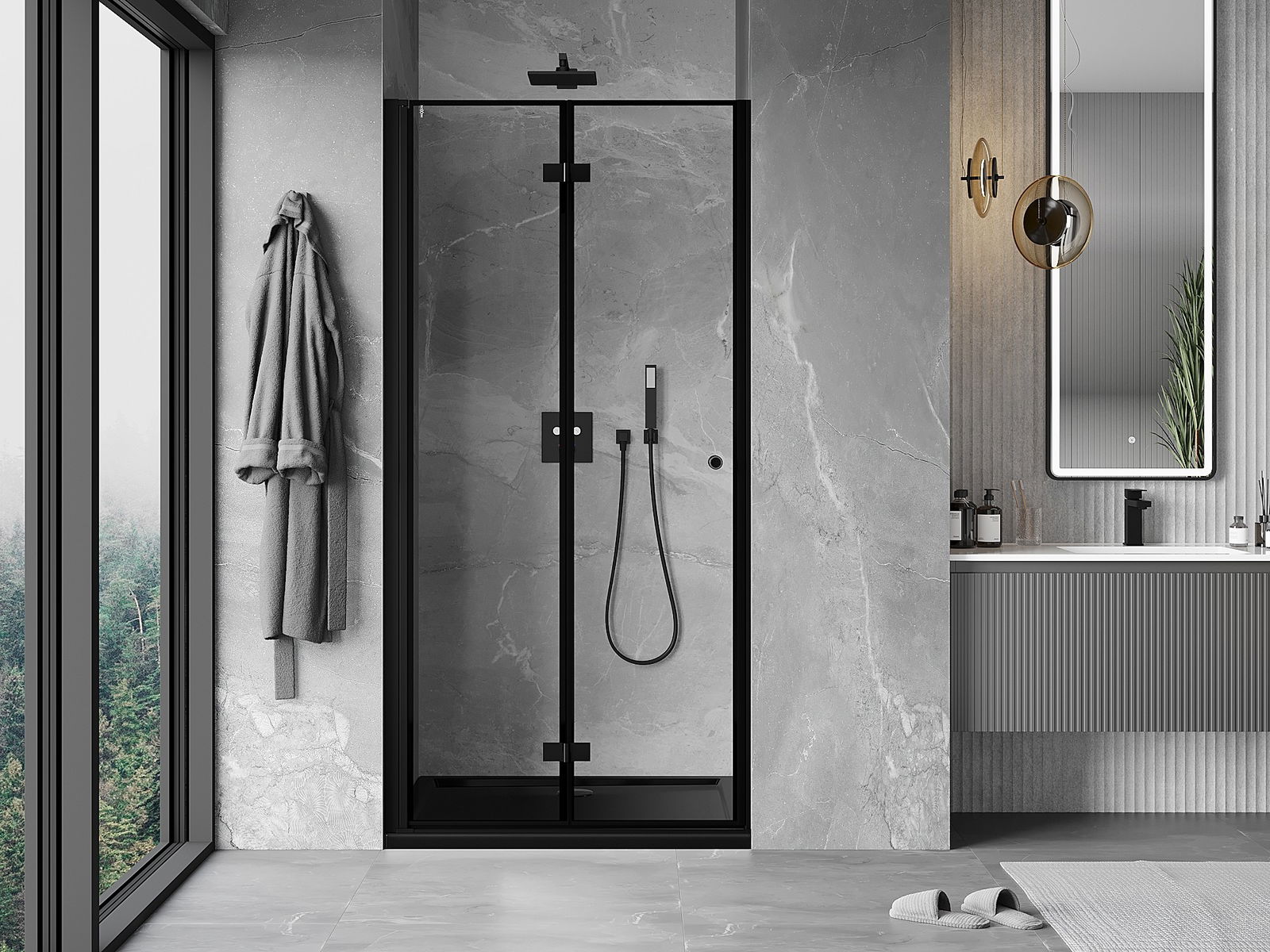 Mexen Mist-F сгъваема лява душ врата 85 см, черна рамка, черно - 8A6-085-000-70-70-L