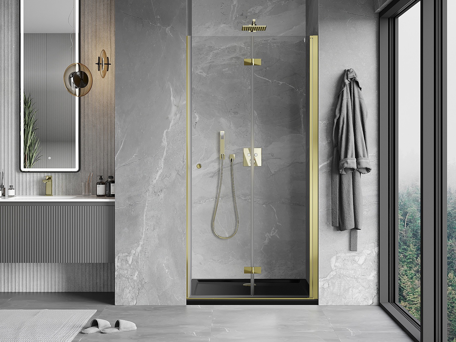 Mexen Mist-F сгъваеми душ врати десни 75 см, прозрачни, златни - 8A6-075-000-50-00-P