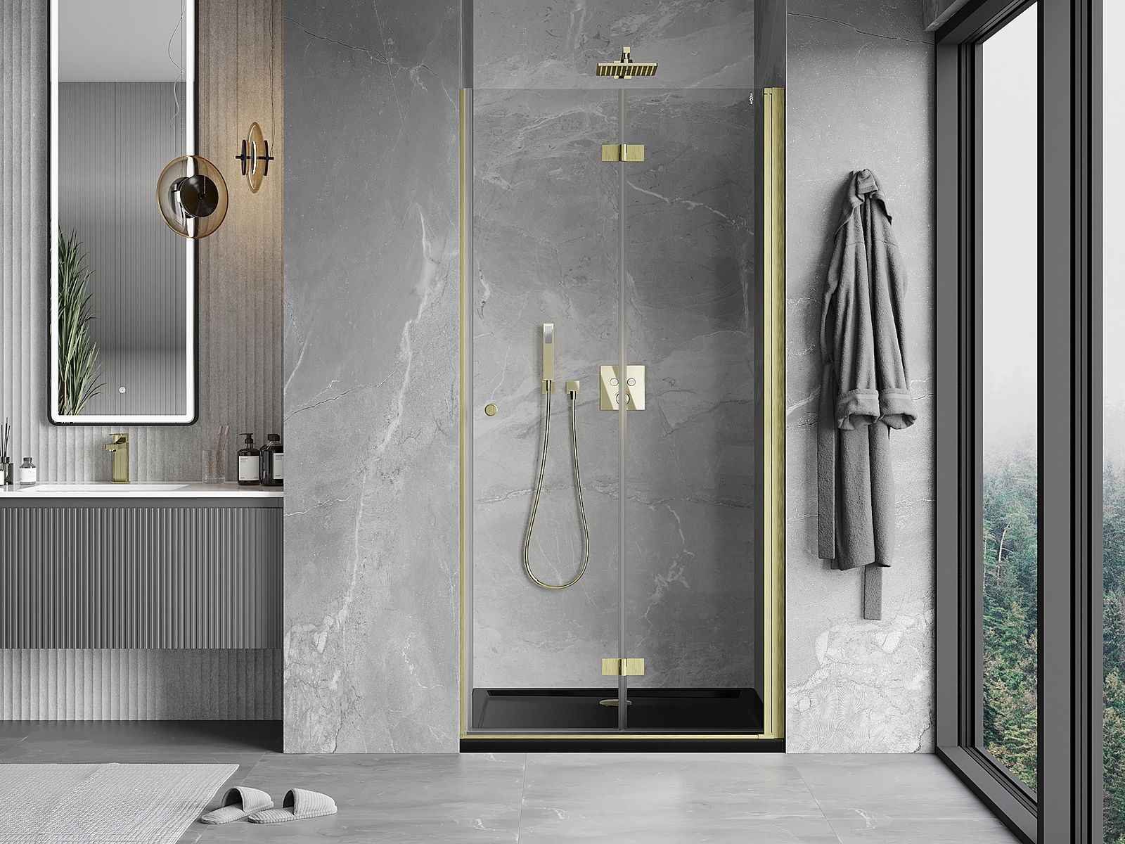 Mexen Mist-F сгъваеми душ врати дясни 70 см, прозрачни, златни четковани - 8A6-070-000-55-00-P