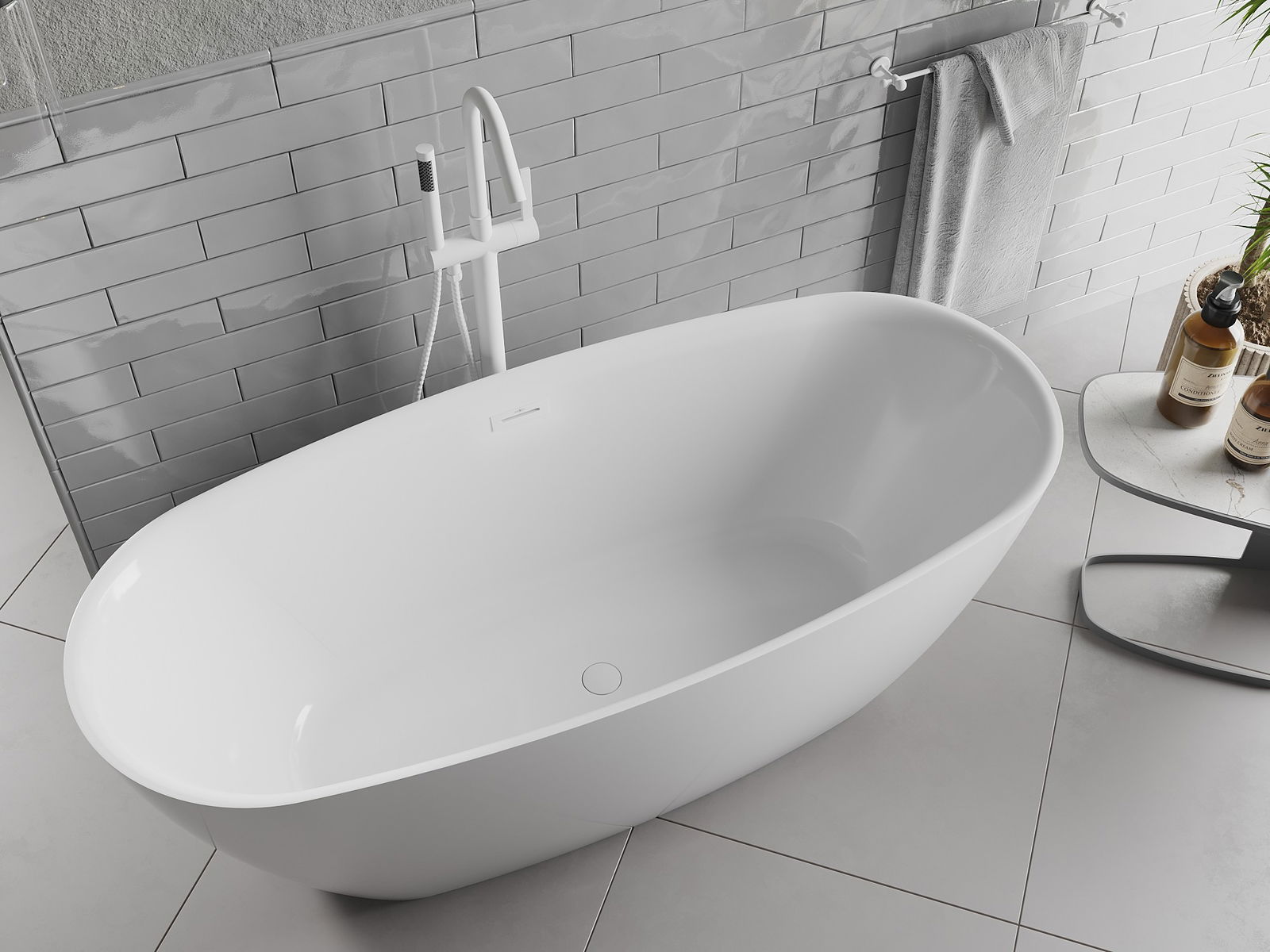 Това е модерен материал, който съчетава елегантен вид с висока издръжливост. Устойчив е на механични повреди, лесен за почистване и приятен на допир. Прозрачната форма и тънкият ръб на ваната ѝ придават лекота и уникален характер, създавайки ефектен акцент в подредбата на банята.