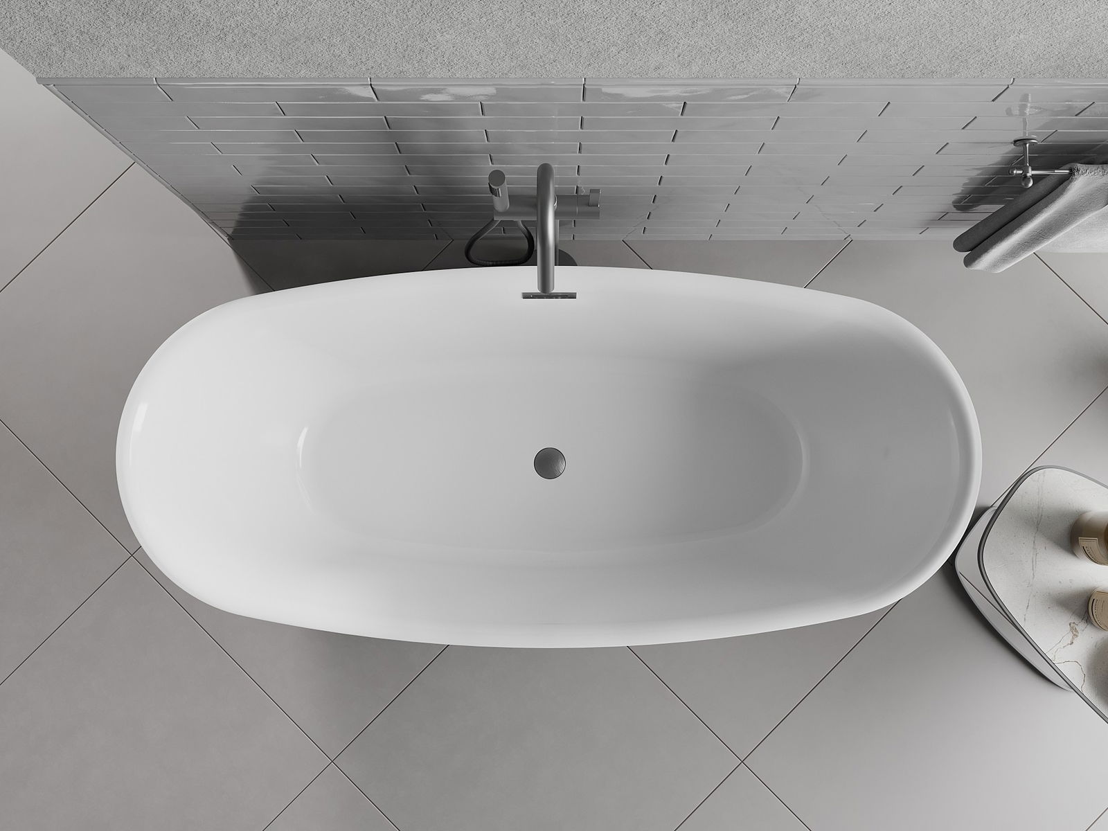 Това е модерен материал, който съчетава елегантен вид с висока издръжливост. Устойчив е на механични повреди, лесен за почистване и приятен на допир. Прозрачната форма и тънкият ръб на ваната ѝ придават лекота и уникален характер, създавайки ефектен акцент в подредбата на банята.