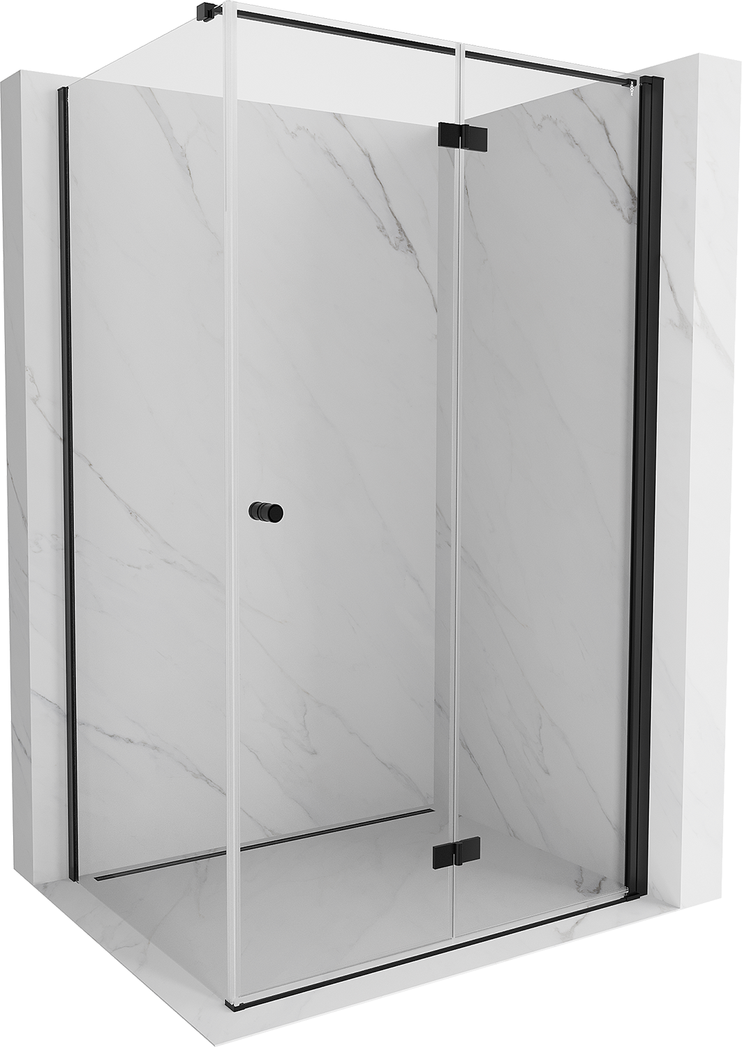 Mexen Mist-F сгъваема душ кабина дясна 85 x 70 см, прозрачна, черна - 8A6T-085-070-70-00-P
