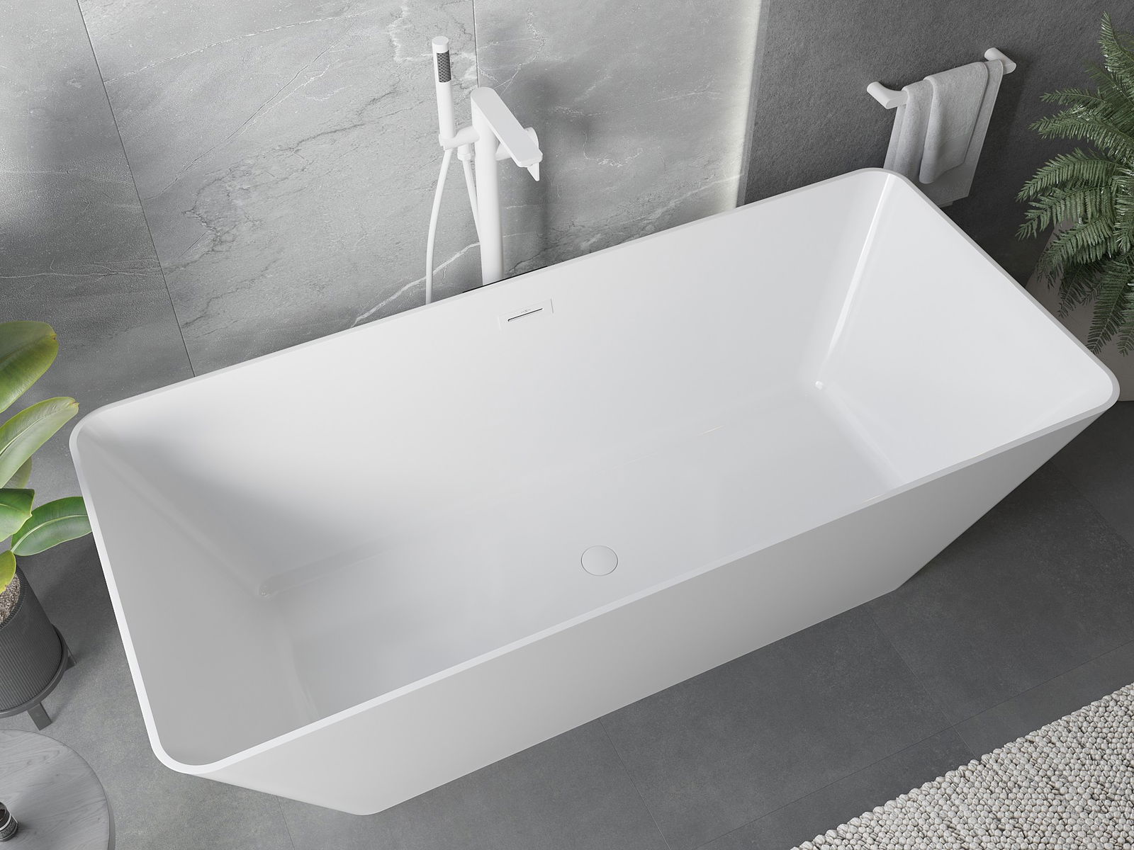 Това е модерен материал, който съчетава елегантен вид с висока издръжливост. Устойчив е на механични повреди, лесен за почистване и приятен на допир. Прозрачната форма и тънкият ръб на ваната ѝ придават лекота и уникален характер, създавайки ефектен акцент в подредбата на банята.