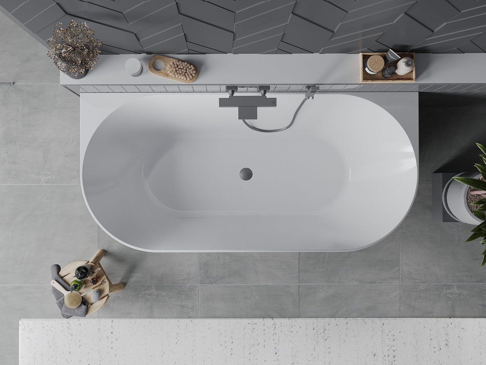 Това е модерен материал, който съчетава елегантен вид с висока издръжливост. Устойчив е на механични повреди, лесен за почистване и приятен на допир. Прозрачната форма и тънкият ръб на ваната ѝ придават лекота и уникален характер, създавайки ефектен акцент в подредбата на банята.