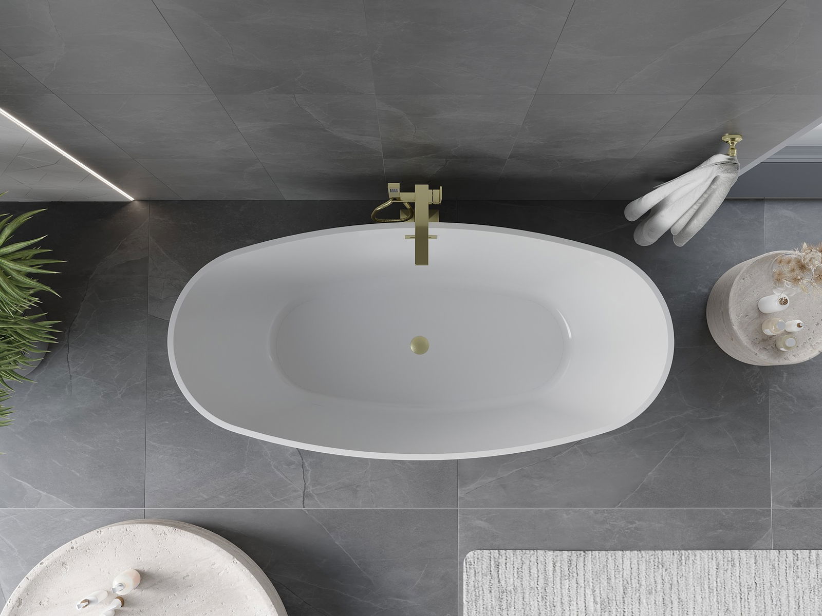 Това е модерен материал, който съчетава елегантен вид с висока издръжливост. Устойчив е на механични повреди, лесен за почистване и приятен на допир. Прозрачната форма и тънкият ръб на ваната ѝ придават лекота и уникален характер, създавайки ефектен акцент в подредбата на банята.