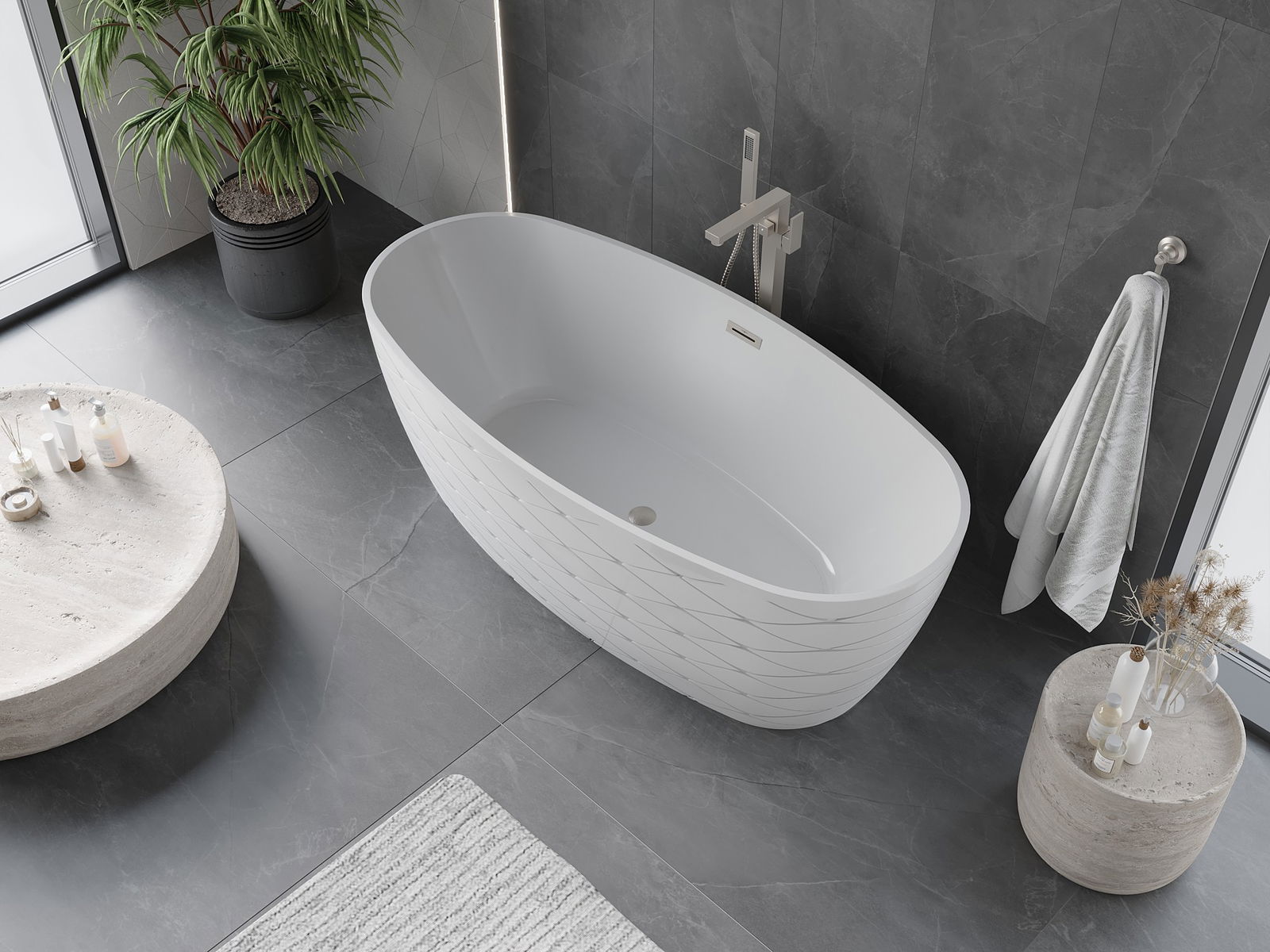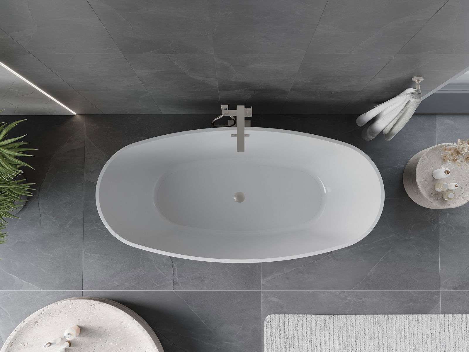 Това е модерен материал, който съчетава елегантен вид с висока издръжливост. Устойчив е на механични повреди, лесен за почистване и приятен на допир. Прозрачната форма и тънкият ръб на ваната ѝ придават лекота и уникален характер, създавайки ефектен акцент в подредбата на банята.