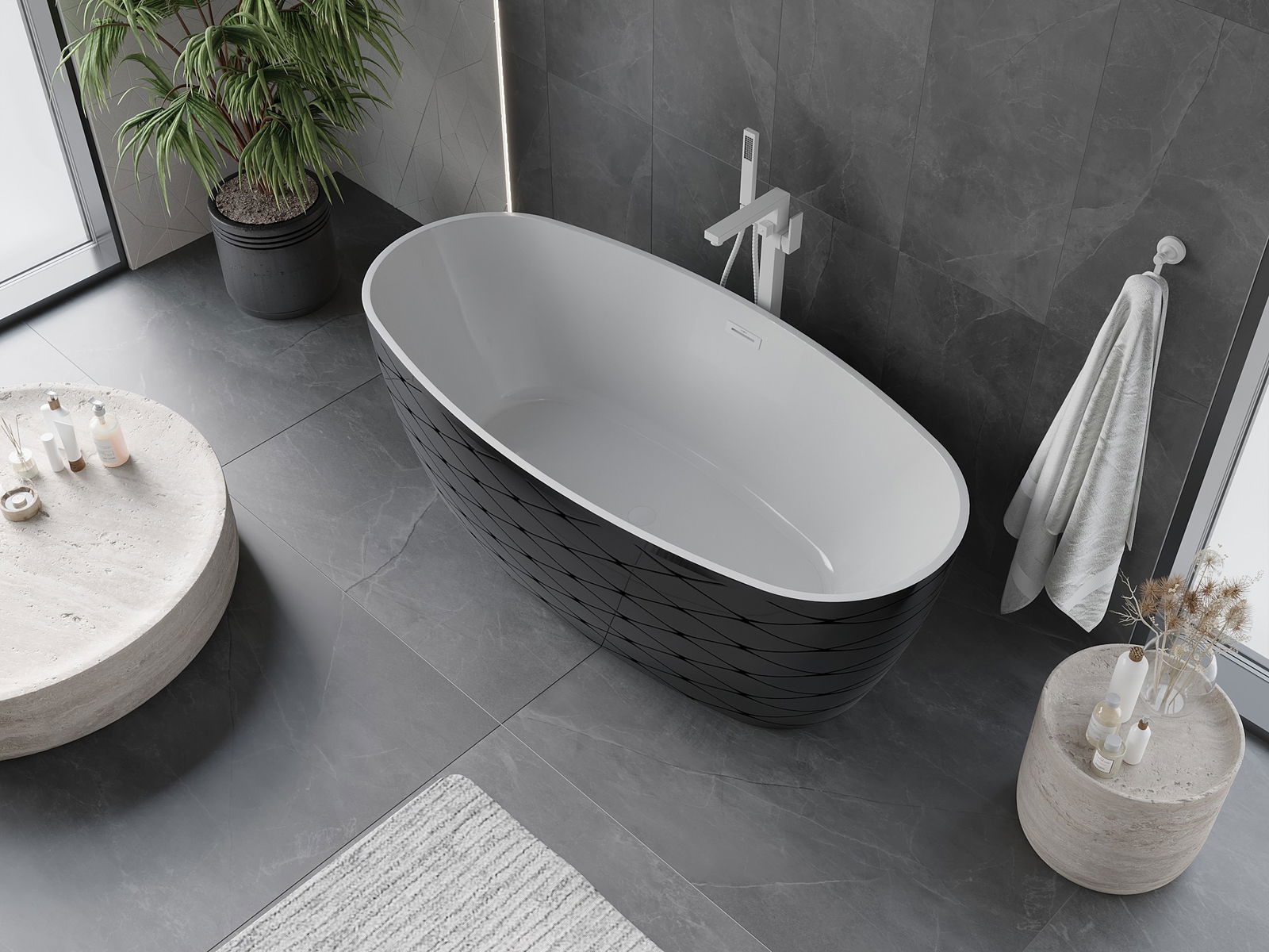 Това е модерен материал, който съчетава елегантен вид с висока издръжливост. Устойчив е на механични повреди, лесен за почистване и приятен на допир. Прозрачната форма и тънкият ръб на ваната ѝ придават лекота и уникален характер, създавайки ефектен акцент в подредбата на банята.