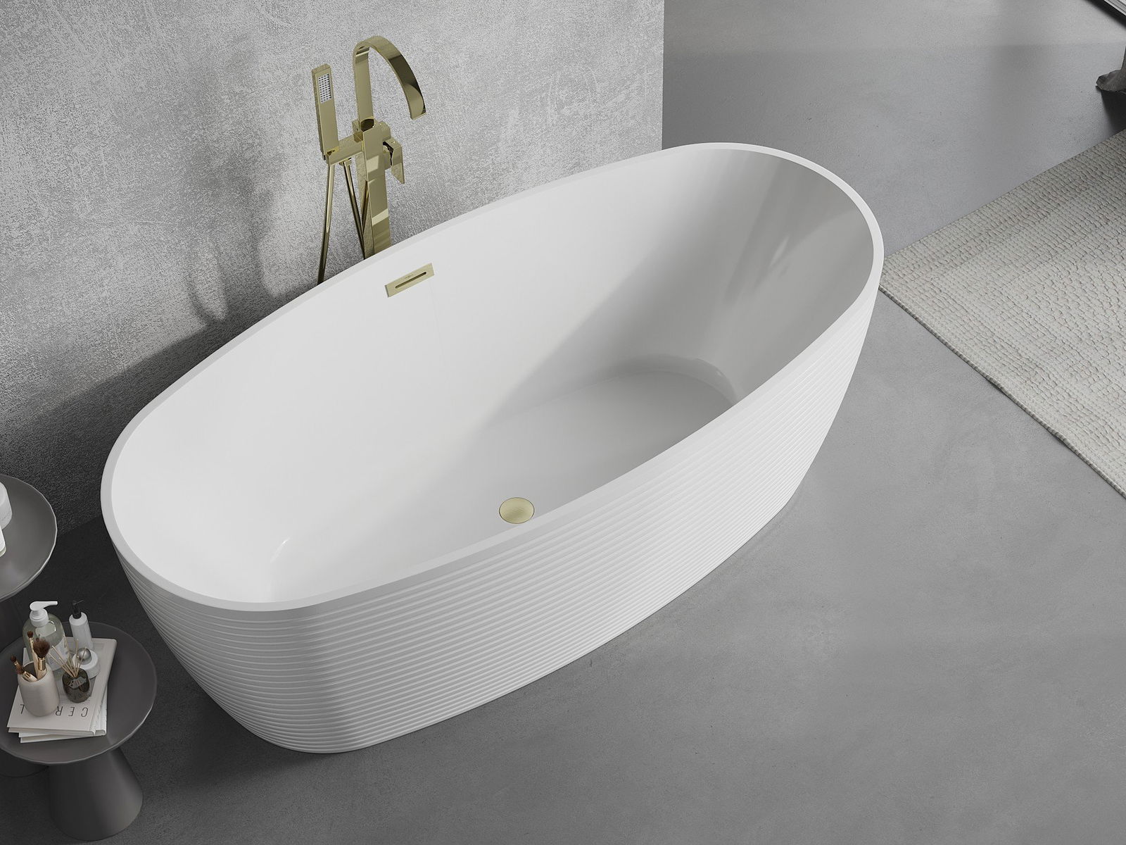 Това е модерен материал, който съчетава елегантен вид с висока издръжливост. Устойчив е на механични повреди, лесен за почистване и приятен на допир. Прозрачната форма и тънкият ръб на ваната ѝ придават лекота и уникален характер, създавайки ефектен акцент в подредбата на банята.