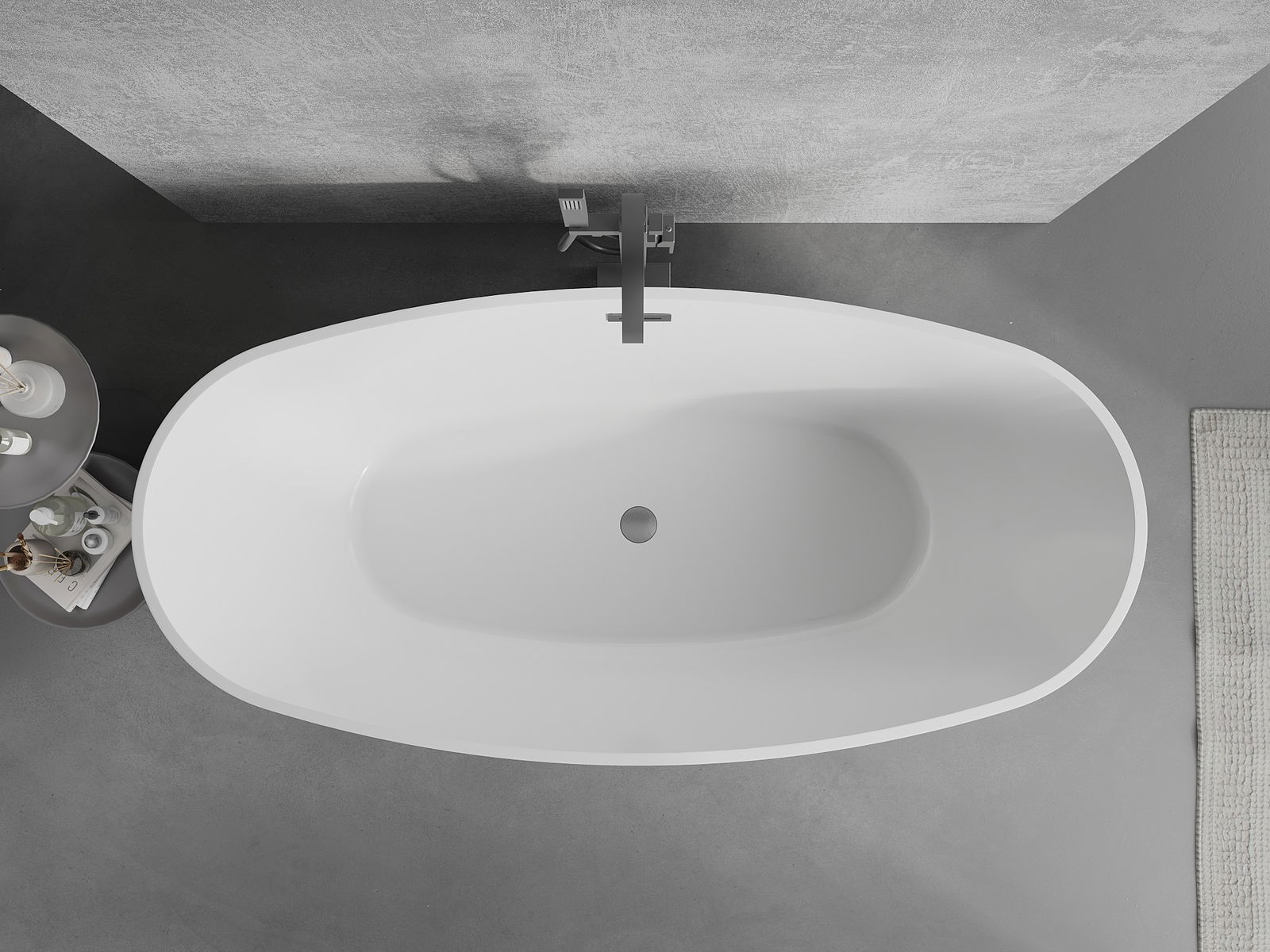 Това е модерен материал, който съчетава елегантен вид с висока издръжливост. Устойчив е на механични повреди, лесен за почистване и приятен на допир. Прозрачната форма и тънкият ръб на ваната ѝ придават лекота и уникален характер, създавайки ефектен акцент в подредбата на банята.