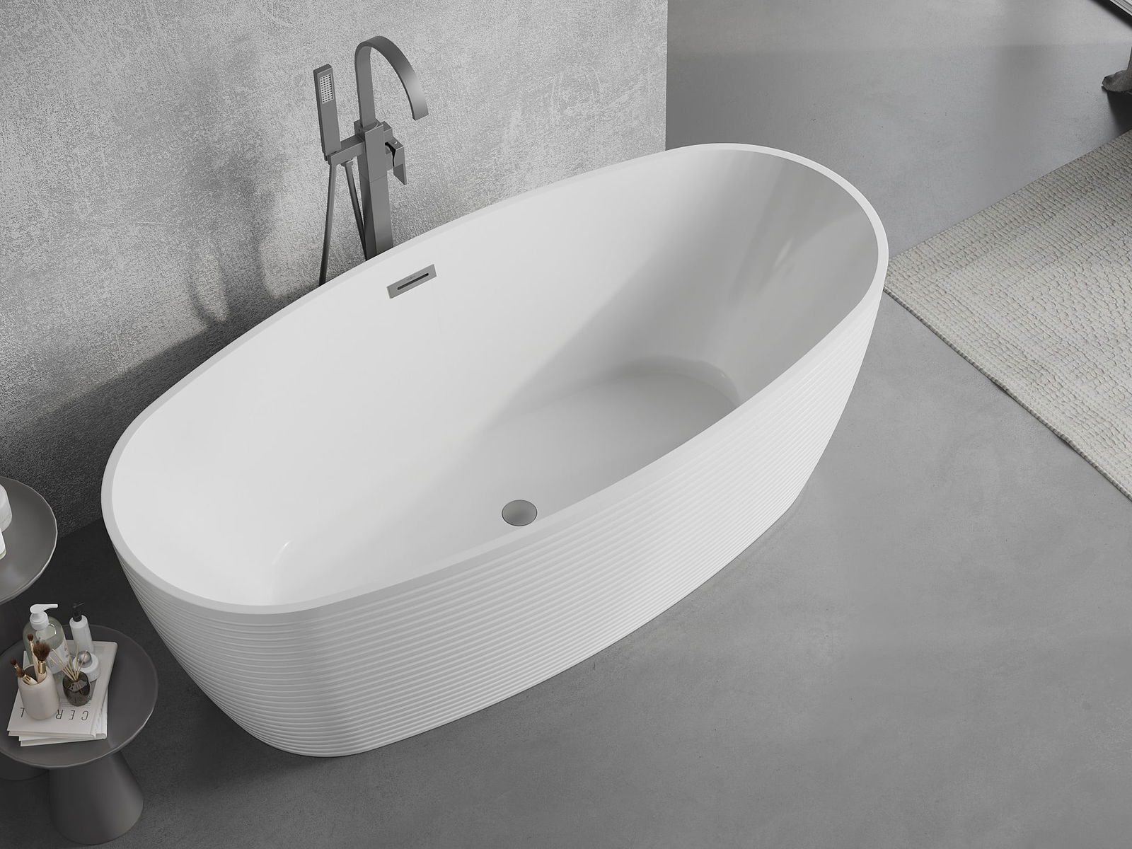 Това е модерен материал, който съчетава елегантен вид с висока издръжливост. Устойчив е на механични повреди, лесен за почистване и приятен на допир. Прозрачната форма и тънкият ръб на ваната ѝ придават лекота и уникален характер, създавайки ефектен акцент в подредбата на банята.