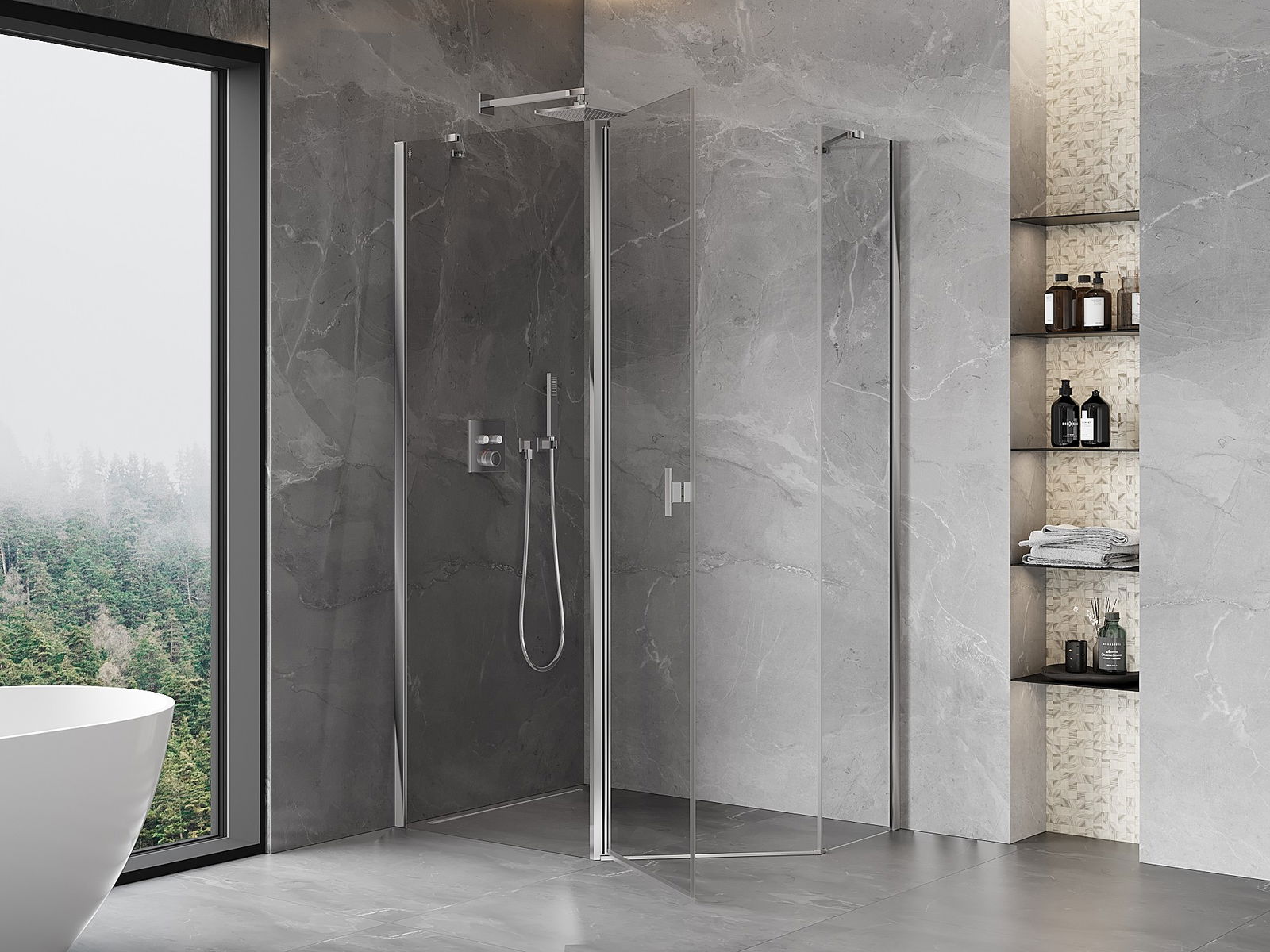 Mexen Mist асиметрична петстенна душ кабина отваряща се 100 x 80 см, прозрачна, хром - 8A8-100-080-01-00