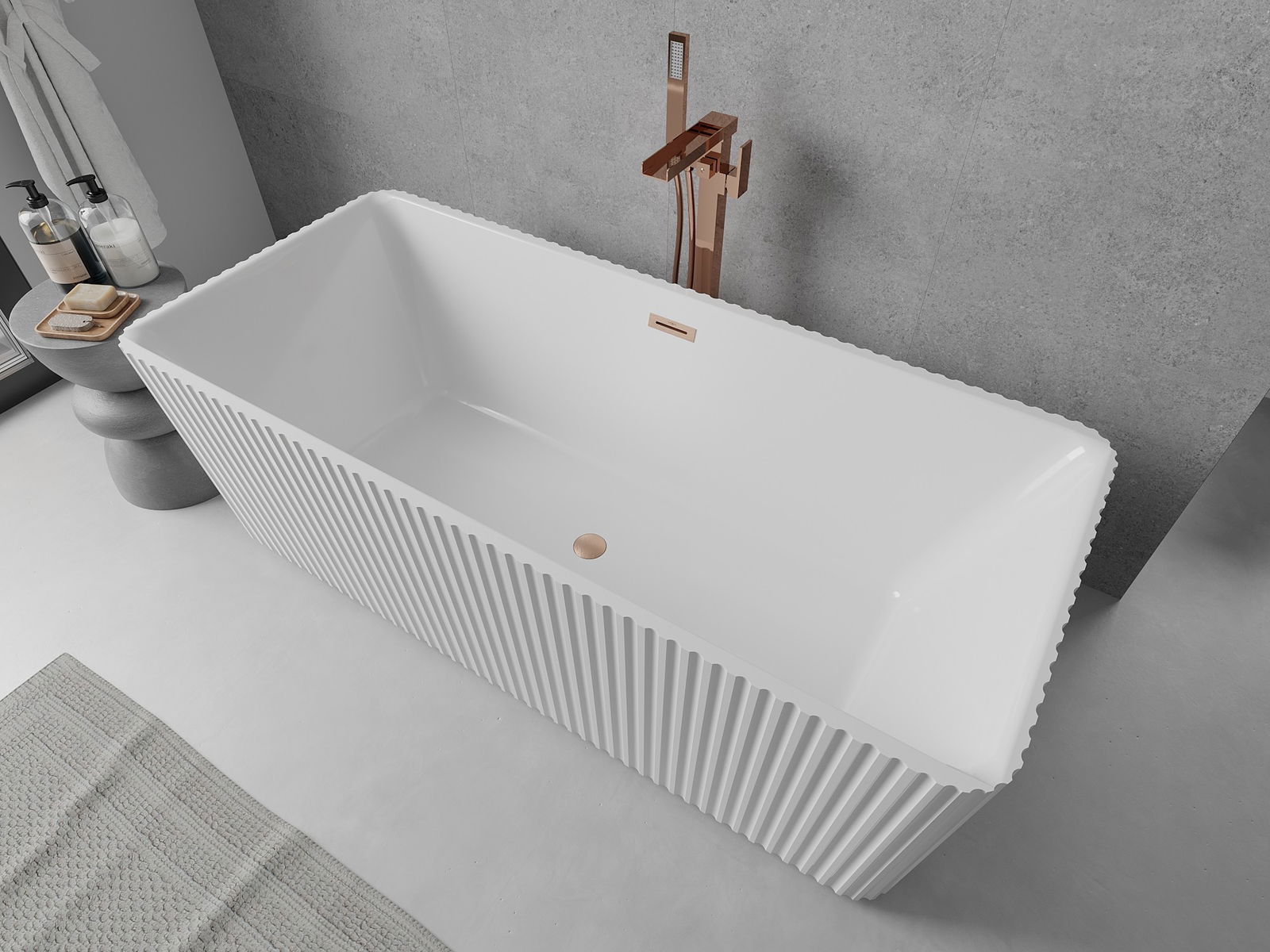Mexen Nila свободностояща вана с ребрист дизайн 170 x 75 см, бяла, с четкан мед преливник - 52841708000-65