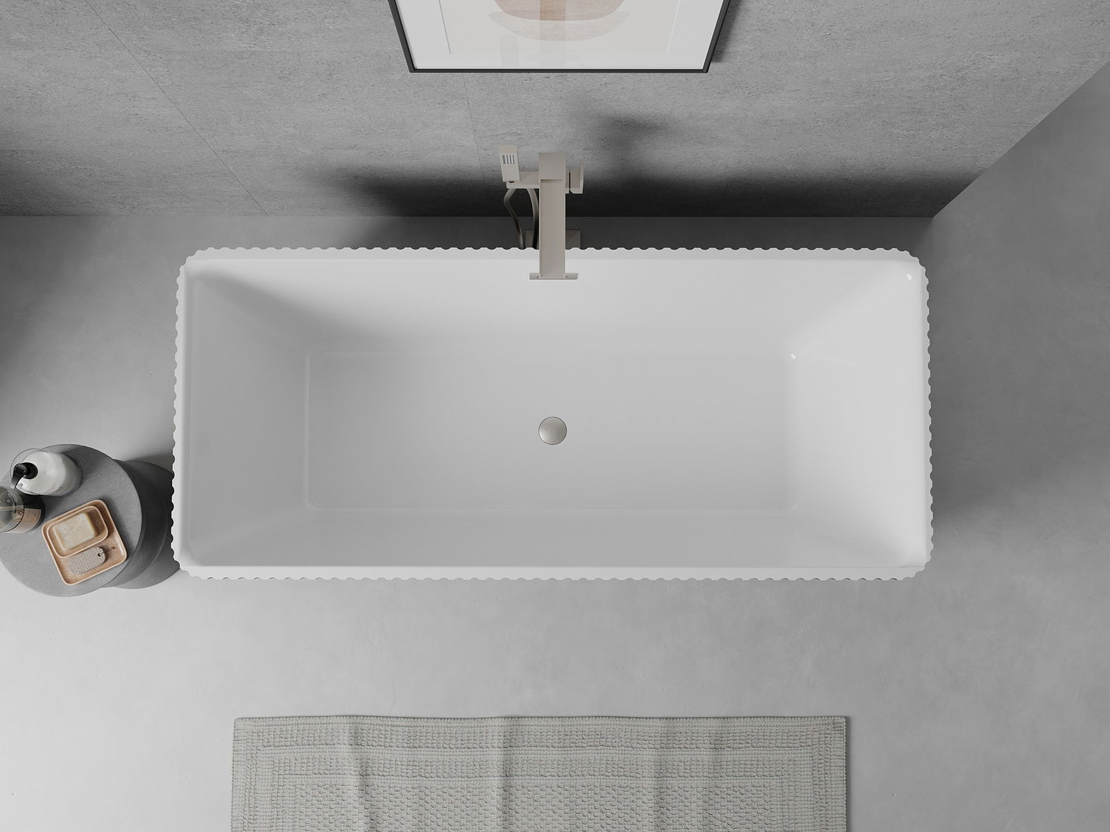 Това е модерен материал, който съчетава елегантен вид с висока издръжливост. Устойчив е на механични повреди, лесен за почистване и приятен на допир. Прозрачната форма и тънкият ръб на ваната ѝ придават лекота и уникален характер, създавайки ефектен акцент в подредбата на банята.