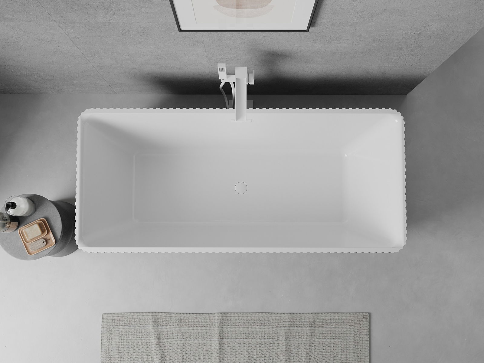 Това е модерен материал, който съчетава елегантен вид с висока издръжливост. Устойчив е на механични повреди, лесен за почистване и приятен на допир. Прозрачната форма и тънкият ръб на ваната ѝ придават лекота и уникален характер, създавайки ефектен акцент в подредбата на банята.