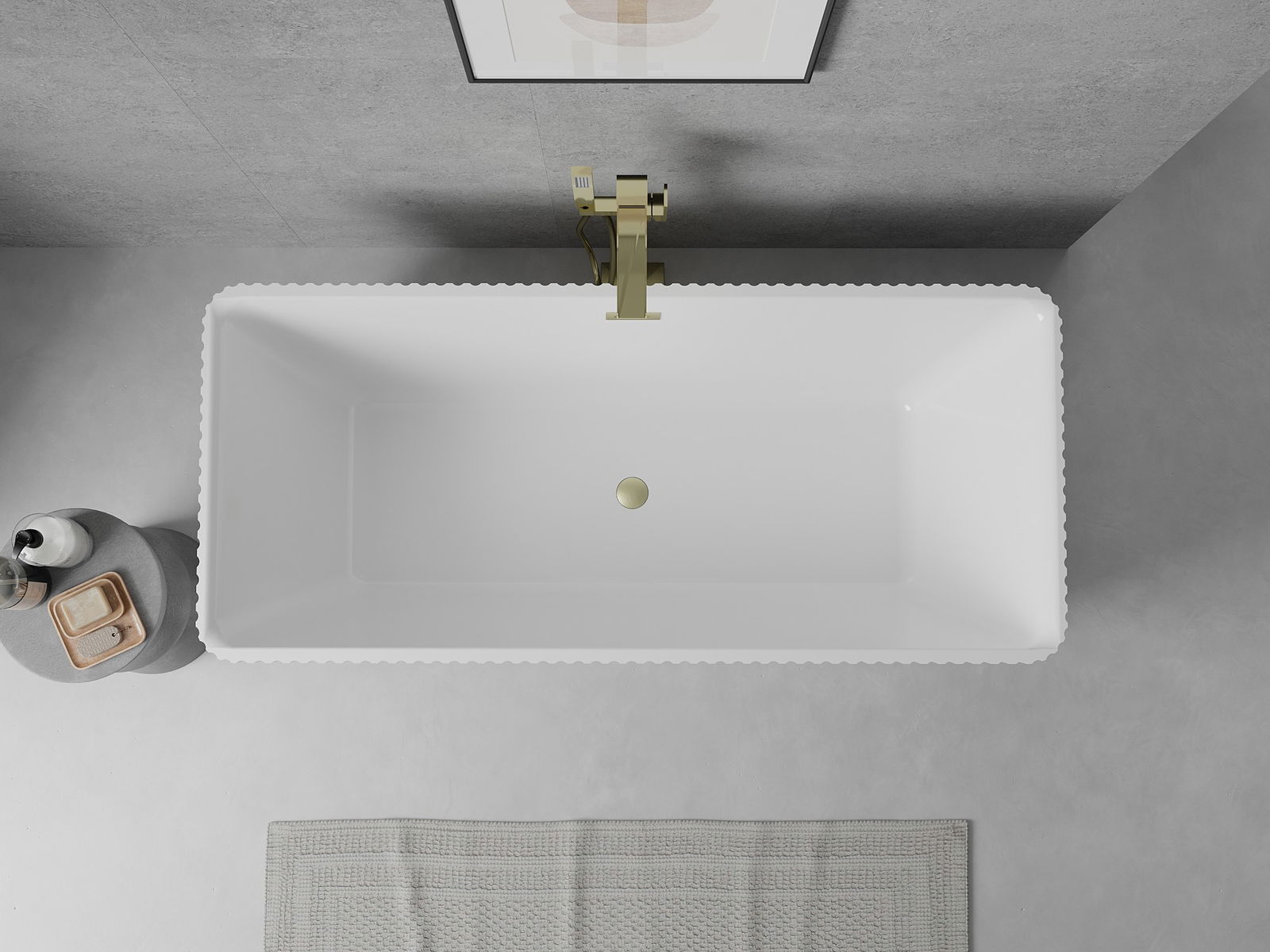Това е модерен материал, който съчетава елегантен вид с висока издръжливост. Устойчив е на механични повреди, лесен за почистване и приятен на допир. Прозрачната форма и тънкият ръб на ваната ѝ придават лекота и уникален характер, създавайки ефектен акцент в подредбата на банята.