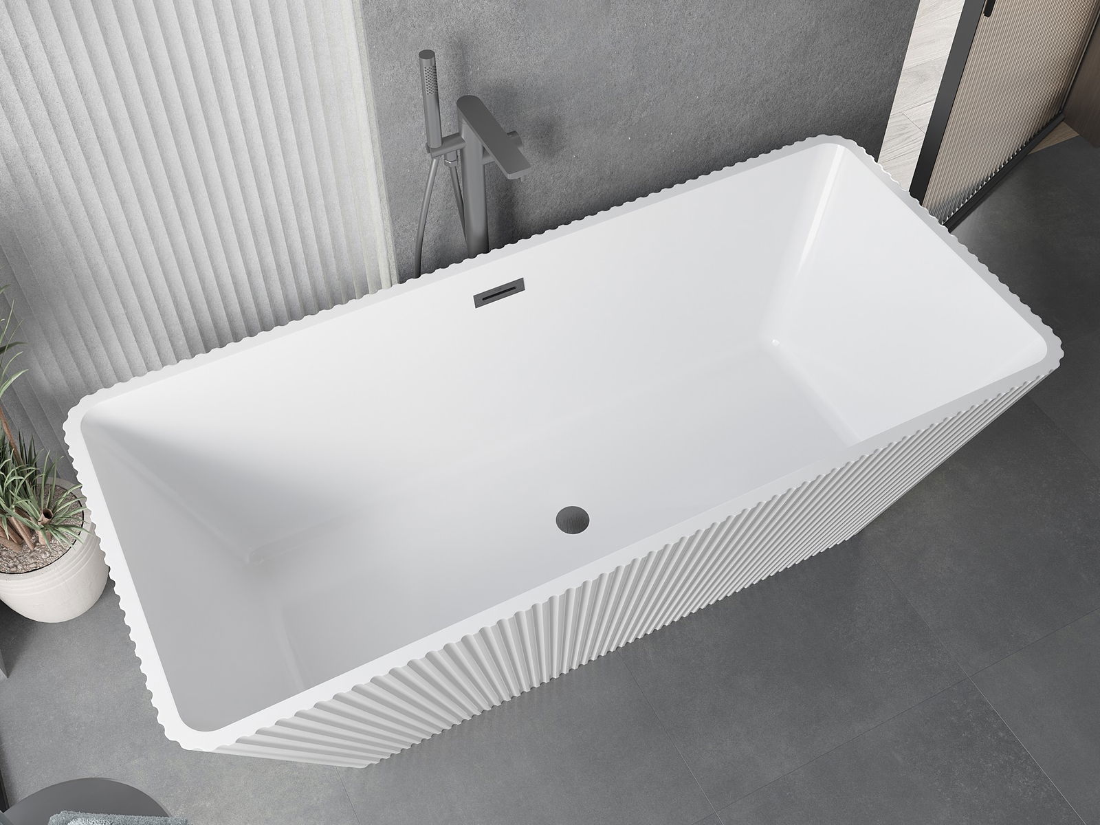 Това е модерен материал, който съчетава елегантен вид с висока издръжливост. Устойчив е на механични повреди, лесен за почистване и приятен на допир. Прозрачната форма и тънкият ръб на ваната ѝ придават лекота и уникален характер, създавайки ефектен акцент в подредбата на банята.