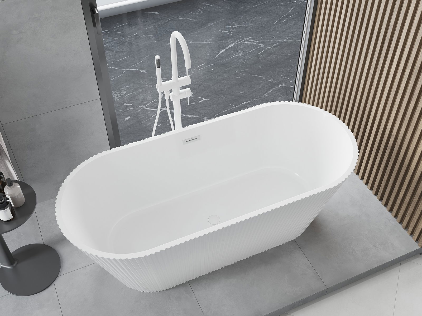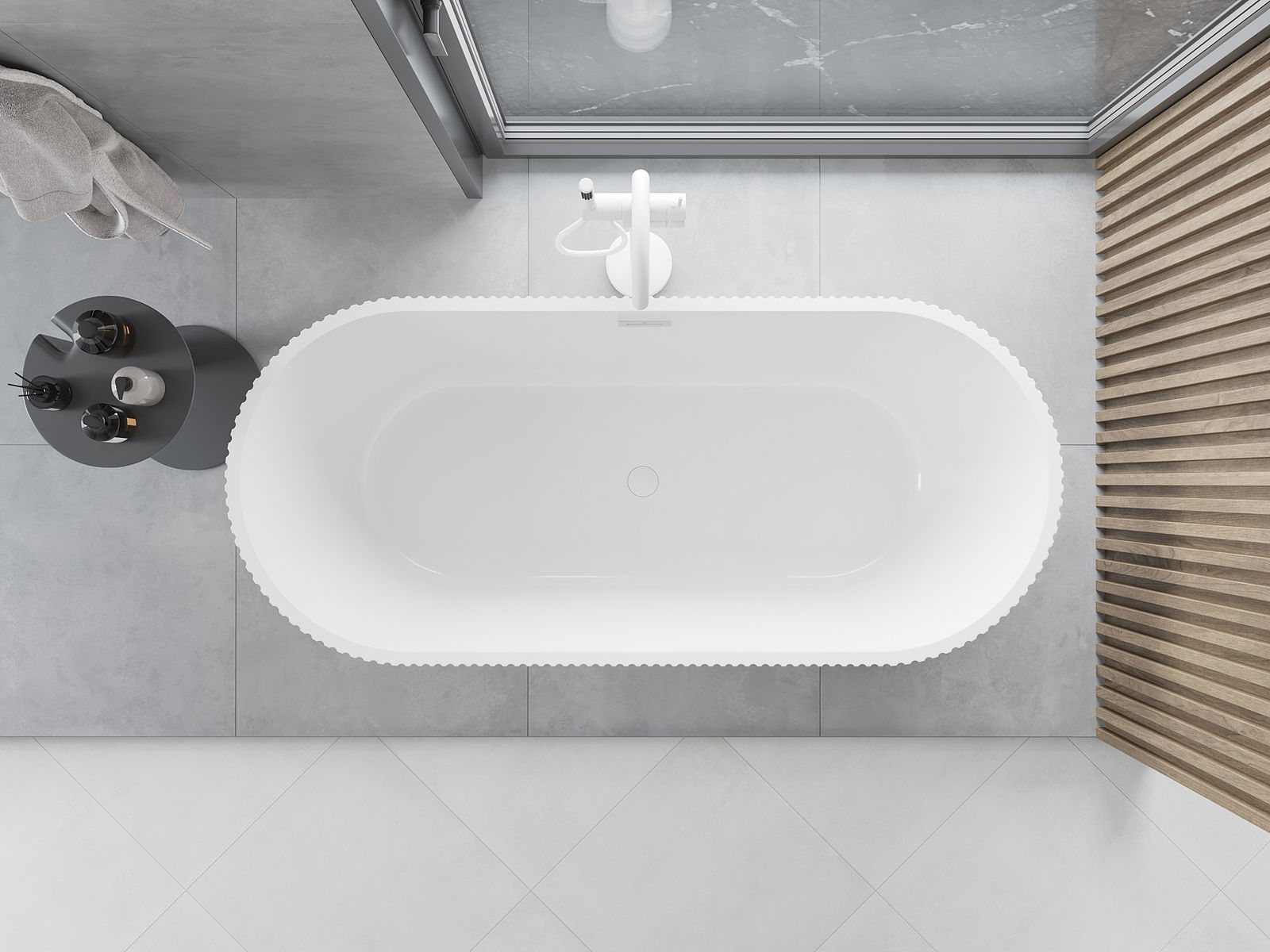 Това е модерен материал, който съчетава елегантен вид с висока издръжливост. Устойчив е на механични повреди, лесен за почистване и приятен на допир. Прозрачната форма и тънкият ръб на ваната ѝ придават лекота и уникален характер, създавайки ефектен акцент в подредбата на банята.
