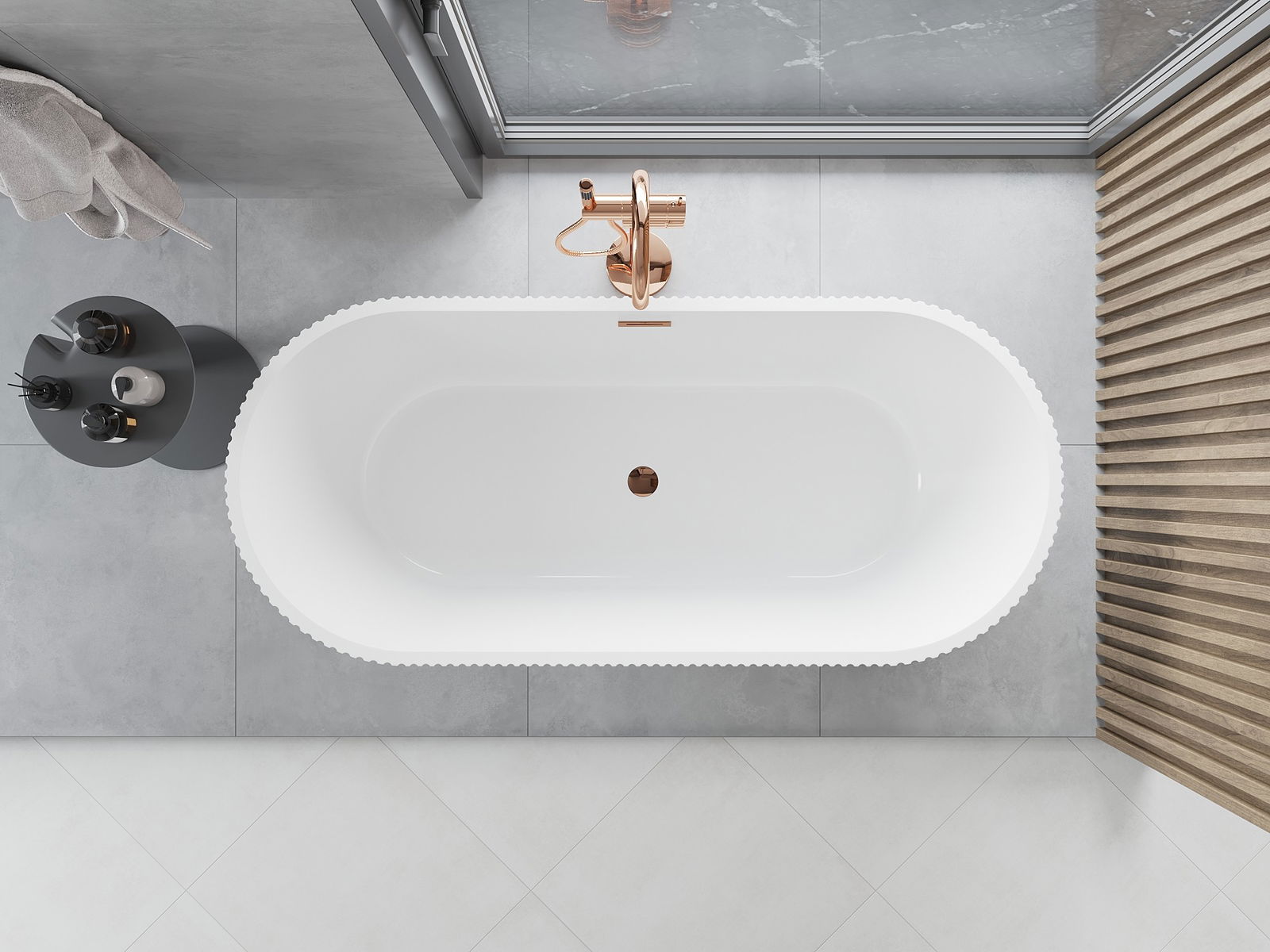 Това е модерен материал, който съчетава елегантен вид с висока издръжливост. Устойчив е на механични повреди, лесен за почистване и приятен на допир. Прозрачната форма и тънкият ръб на ваната ѝ придават лекота и уникален характер, създавайки ефектен акцент в подредбата на банята.