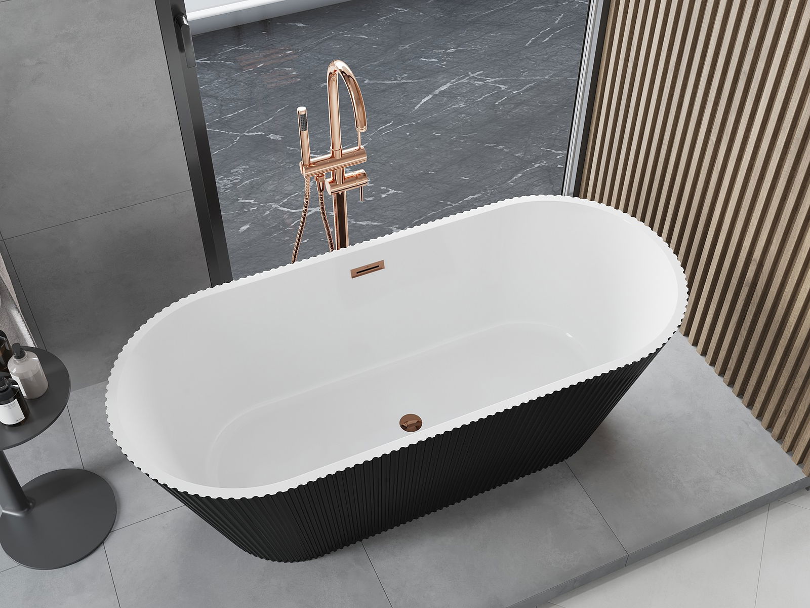 Това е модерен материал, който съчетава елегантен вид с висока издръжливост. Устойчив е на механични повреди, лесен за почистване и приятен на допир. Прозрачната форма и тънкият ръб на ваната ѝ придават лекота и уникален характер, създавайки ефектен акцент в подредбата на банята.