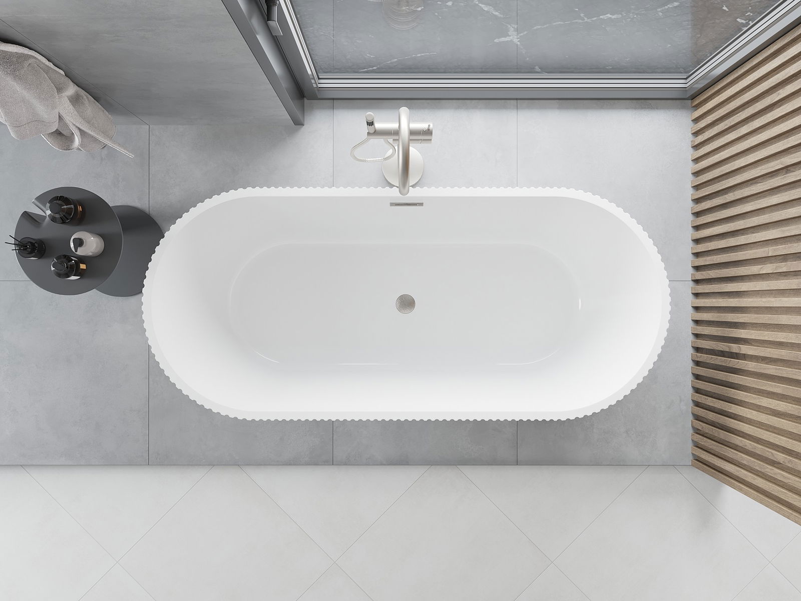Това е модерен материал, който съчетава елегантен вид с висока издръжливост. Устойчив е на механични повреди, лесен за почистване и приятен на допир. Прозрачната форма и тънкият ръб на ваната ѝ придават лекота и уникален характер, създавайки ефектен акцент в подредбата на банята.