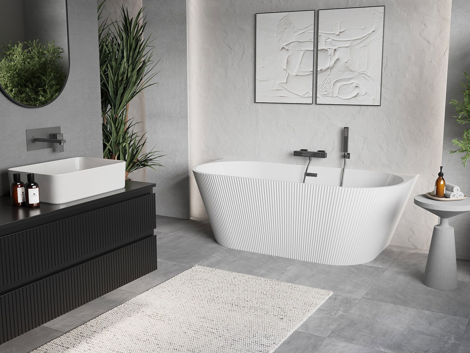 Това е модерен материал, който съчетава елегантен вид с висока издръжливост. Устойчив е на механични повреди, лесен за почистване и приятен на допир. Прозрачната форма и тънкият ръб на ваната ѝ придават лекота и уникален характер, създавайки ефектен акцент в подредбата на банята.