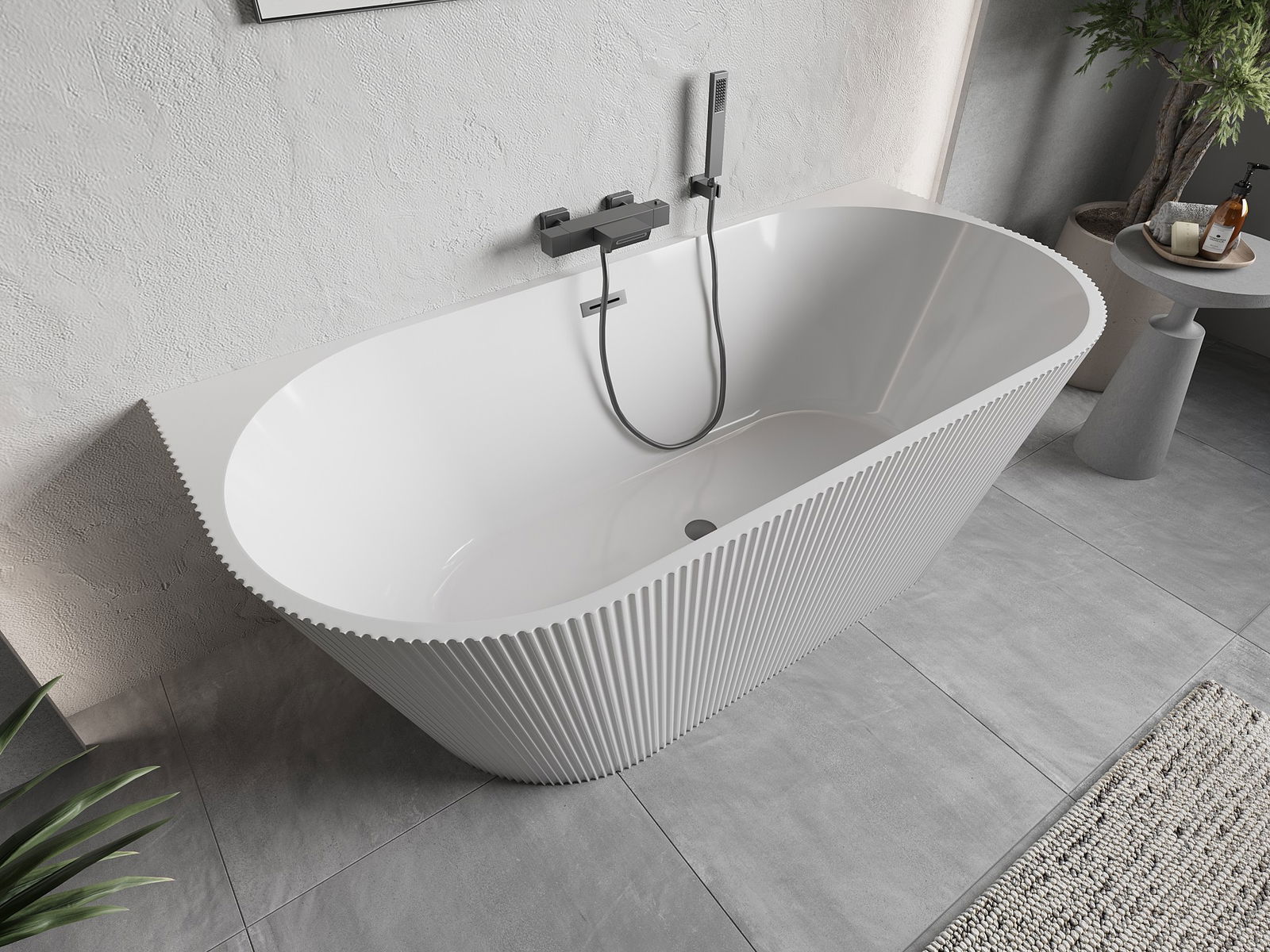 Това е модерен материал, който съчетава елегантен вид с висока издръжливост. Устойчив е на механични повреди, лесен за почистване и приятен на допир. Прозрачната форма и тънкият ръб на ваната ѝ придават лекота и уникален характер, създавайки ефектен акцент в подредбата на банята.