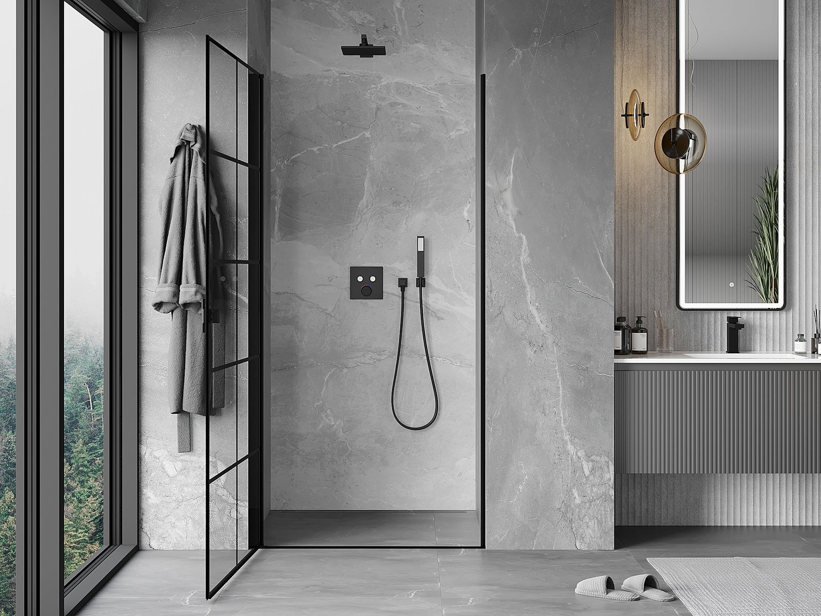 Удобната и практична дръжка е изработена от здрав и устойчив метал. Модерната форма в съчетание с покритието, съответстващо на цвета на профилите, придава на цялото модерен и стилен вид, подчертавайки естетиката на всяка баня.