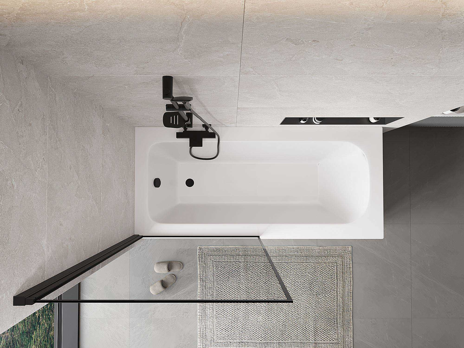 Mexen Mist параван за вана с 1 крило, ляв, 90 x 150 см, черна рамка, черен - 8A9-090-001-70-70-L