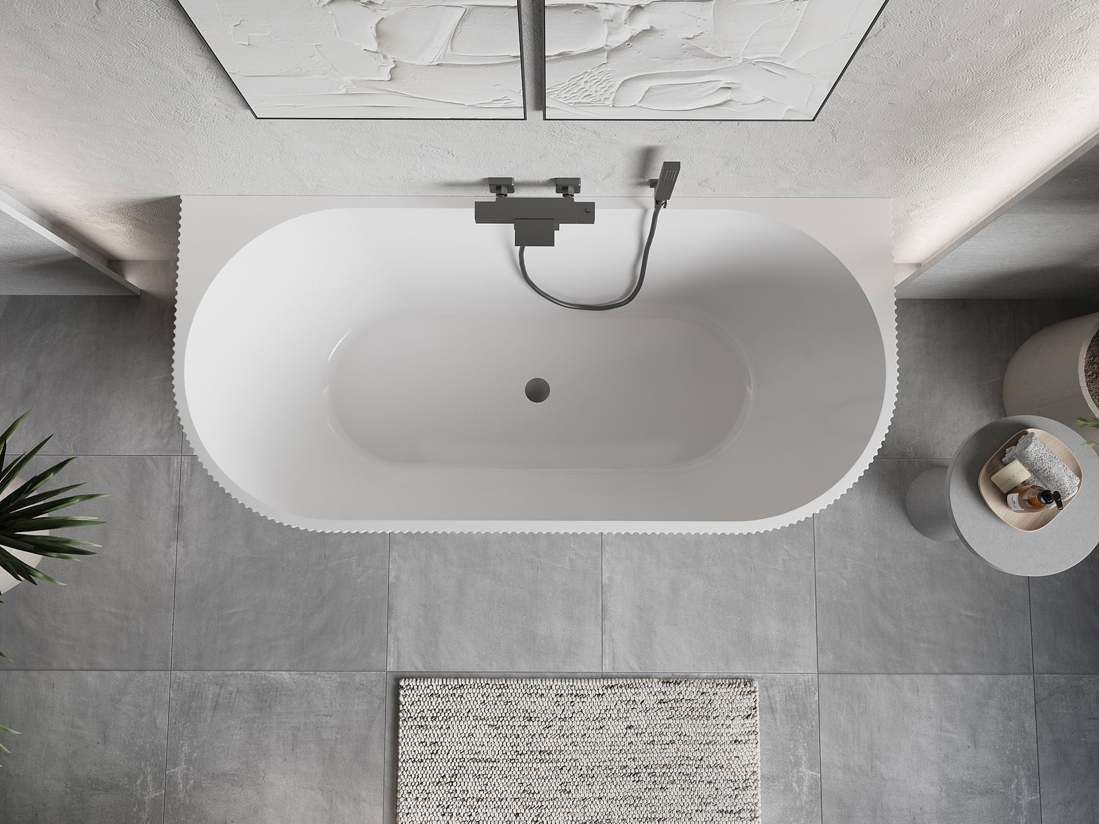 Това е модерен материал, който съчетава елегантен вид с висока издръжливост. Устойчив е на механични повреди, лесен за почистване и приятен на допир. Прозрачната форма и тънкият ръб на ваната ѝ придават лекота и уникален характер, създавайки ефектен акцент в подредбата на банята.