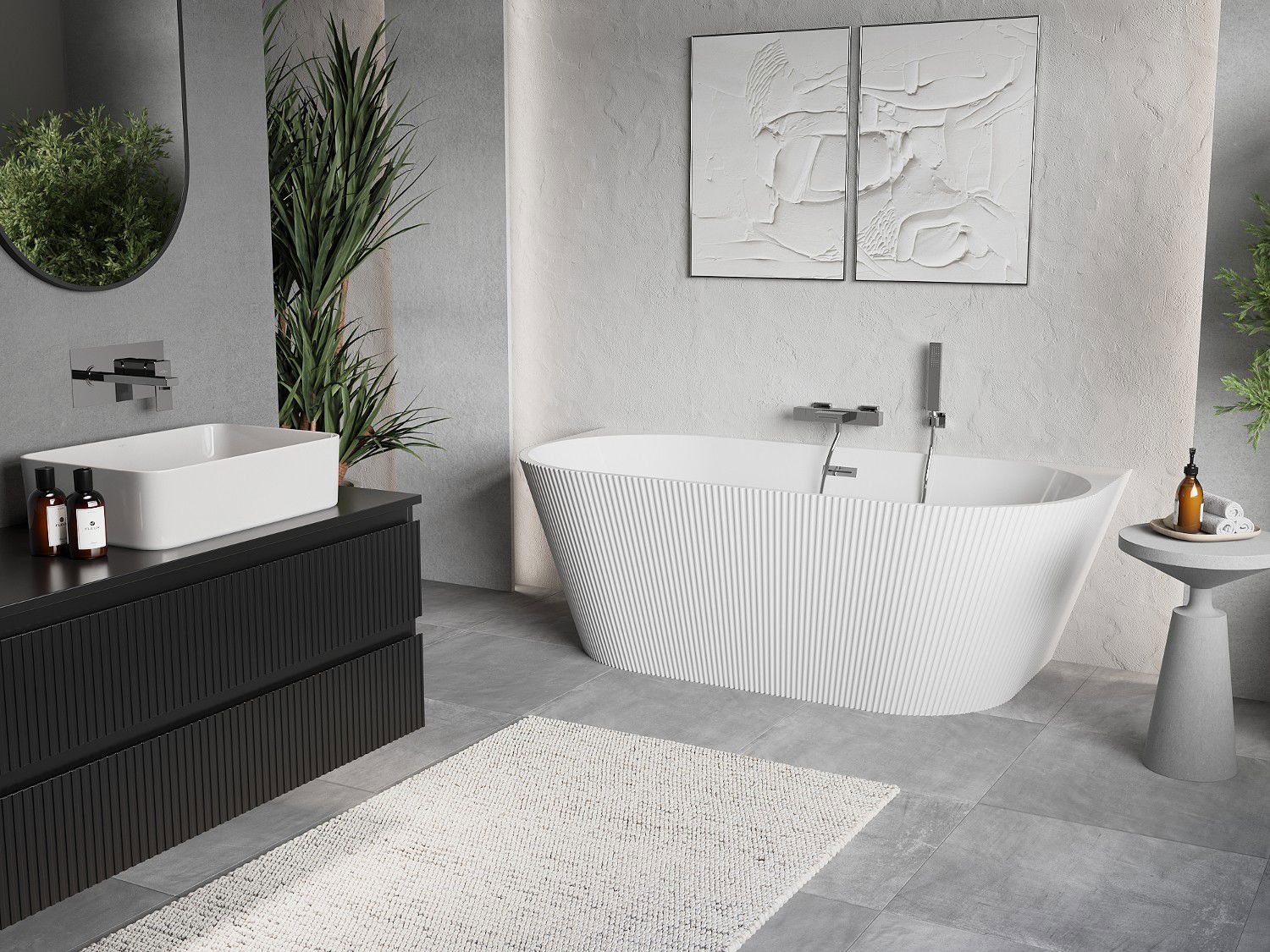 Това е модерен материал, който съчетава елегантен вид с висока издръжливост. Устойчив е на механични повреди, лесен за почистване и приятен на допир. Прозрачната форма и тънкият ръб на ваната ѝ придават лекота и уникален характер, създавайки ефектен акцент в подредбата на банята.