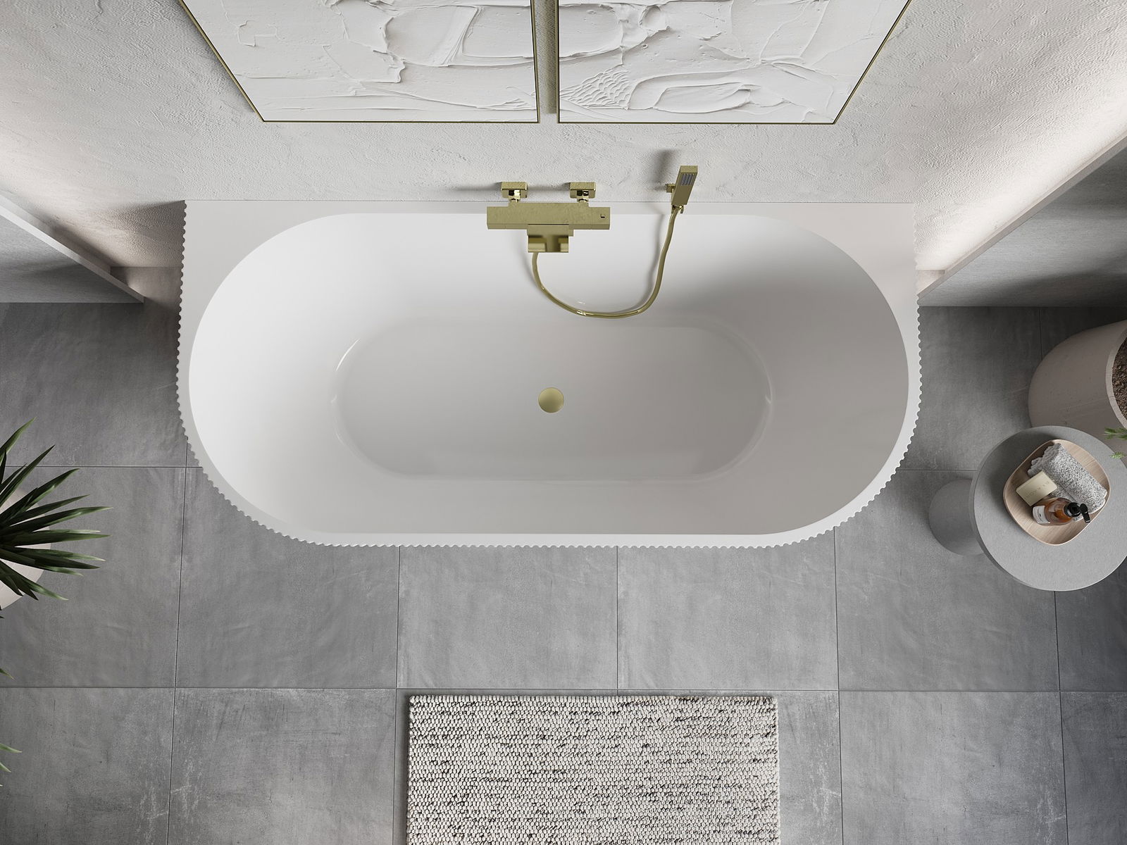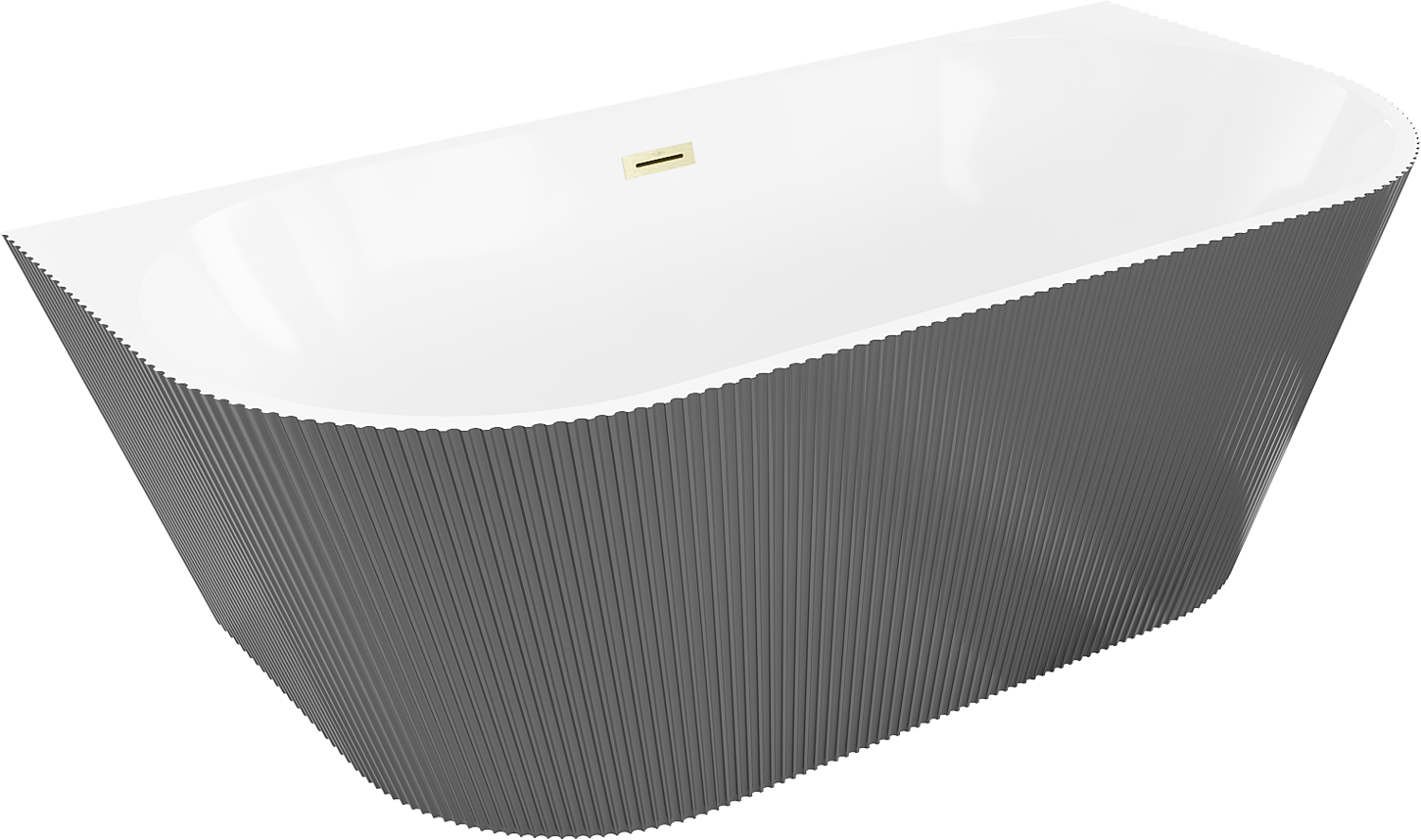Mexen Oris свободностояща вана до стена с оребрение 170 x 80 см, бяла/сива, преливник в златен мат - 52871708062-55